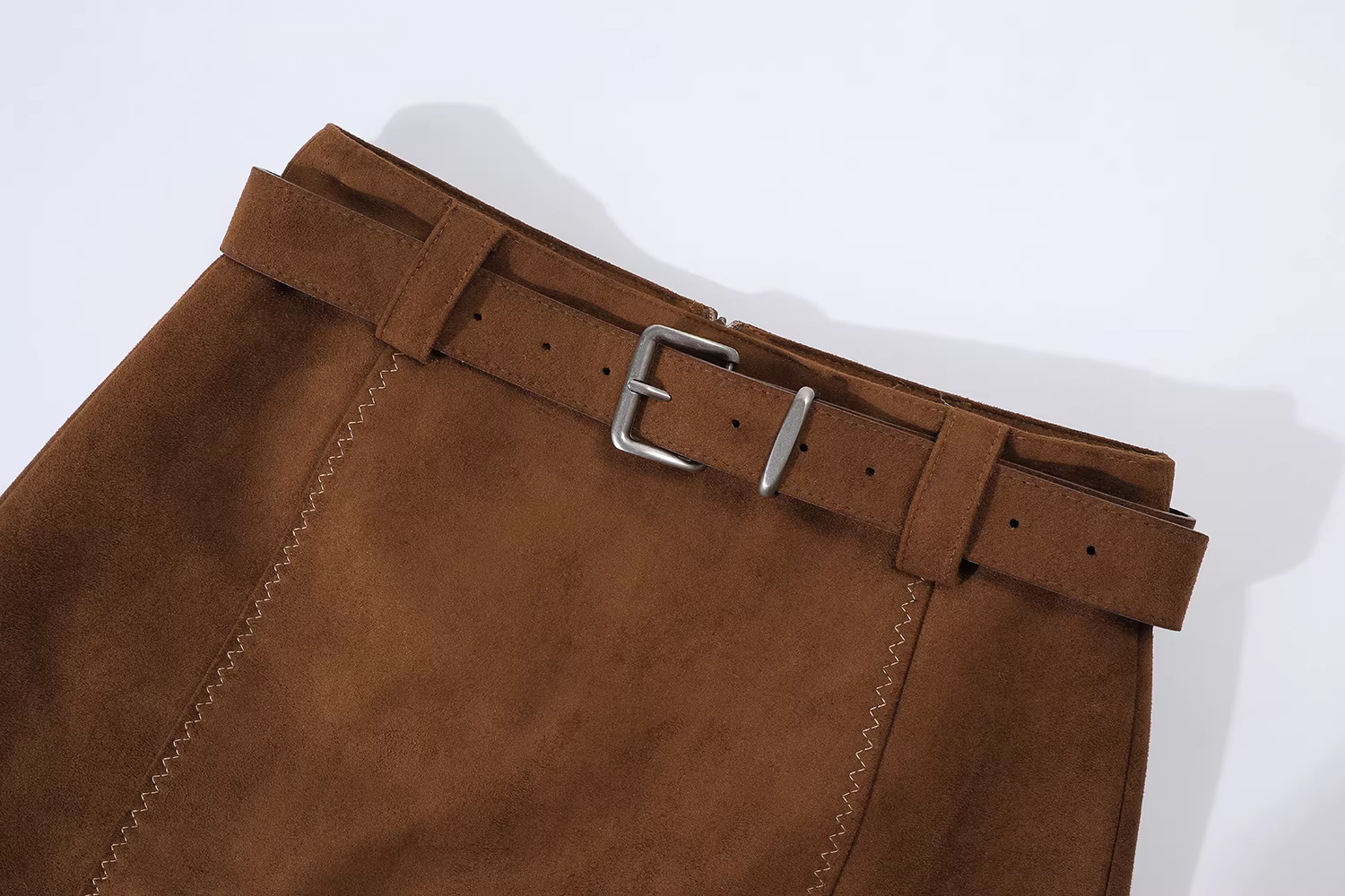 - Váy chữ A màu hạt dẻ kiểu chuồng trại dễ thương có thắt lưng dành cho nữ, váy ngắn đa năng eo cao thanh lịch mùa thu