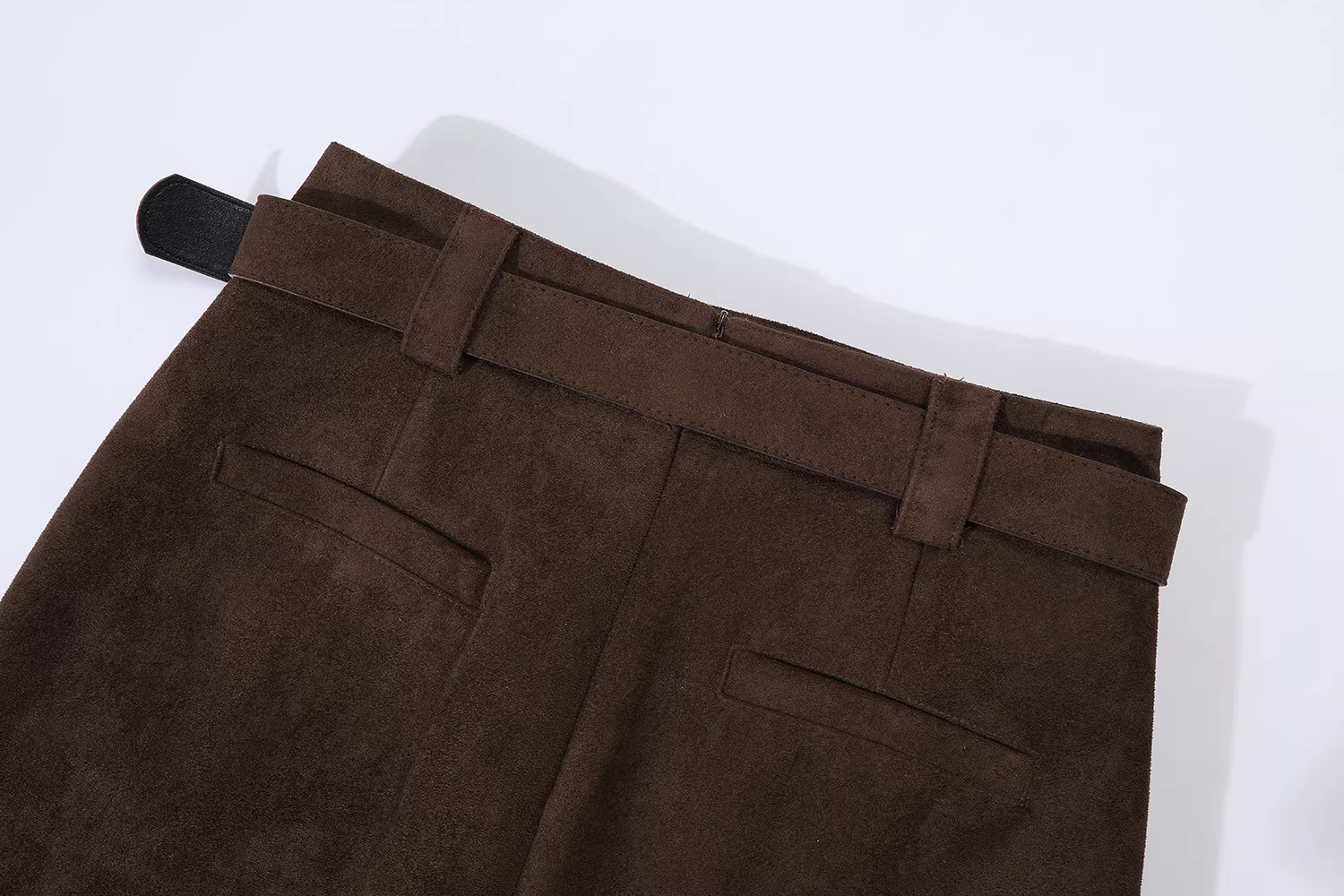 Váy chữ A màu hạt dẻ kiểu chuồng trại dễ thương có thắt lưng dành cho nữ, váy ngắn đa năng eo cao thanh lịch mùa thu