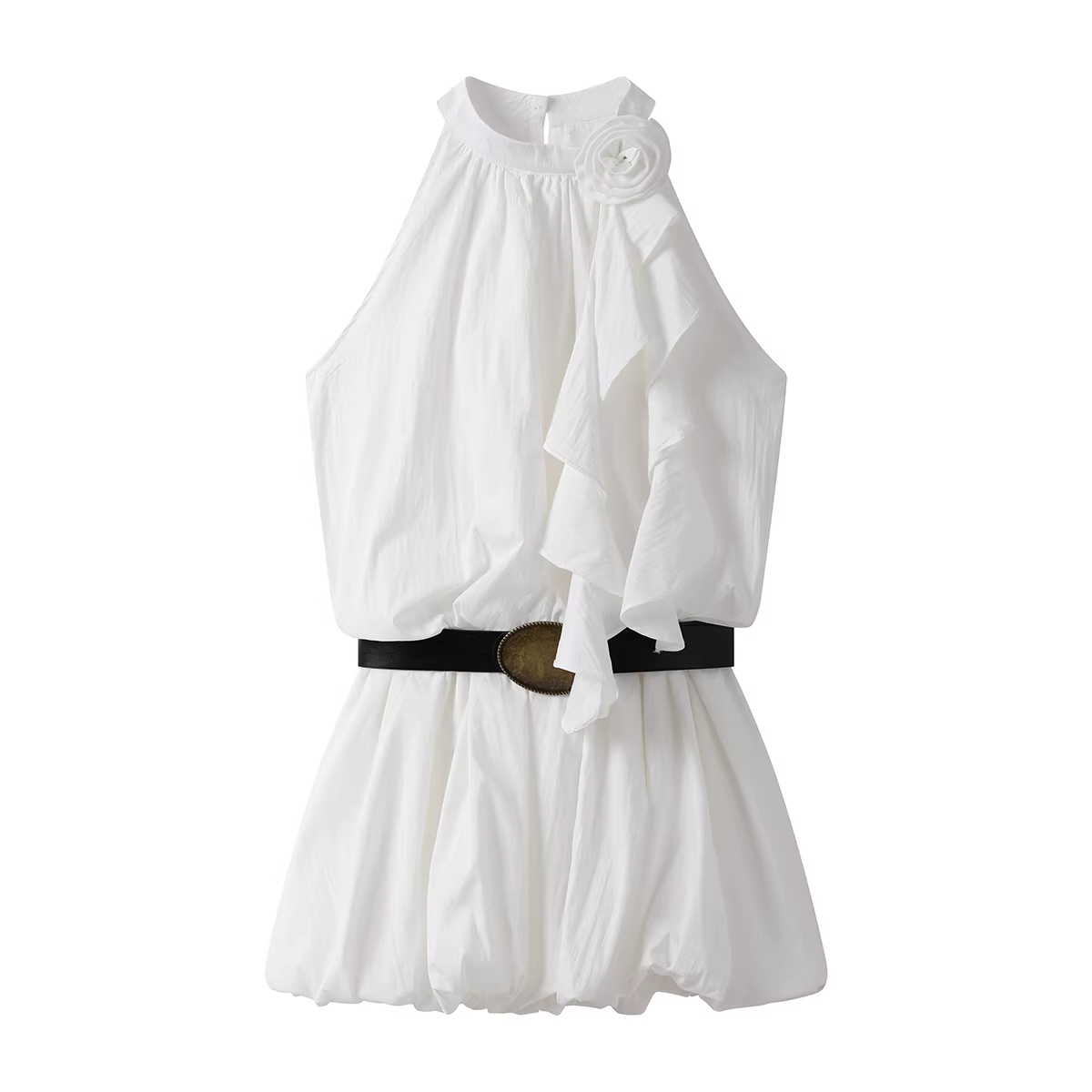 - Váy cổ yếm kiểu Pháp sang trọng và đẹp mắt dành cho nữ, váy ngắn chữ A không tay ôm eo hợp thời trang mùa hè.