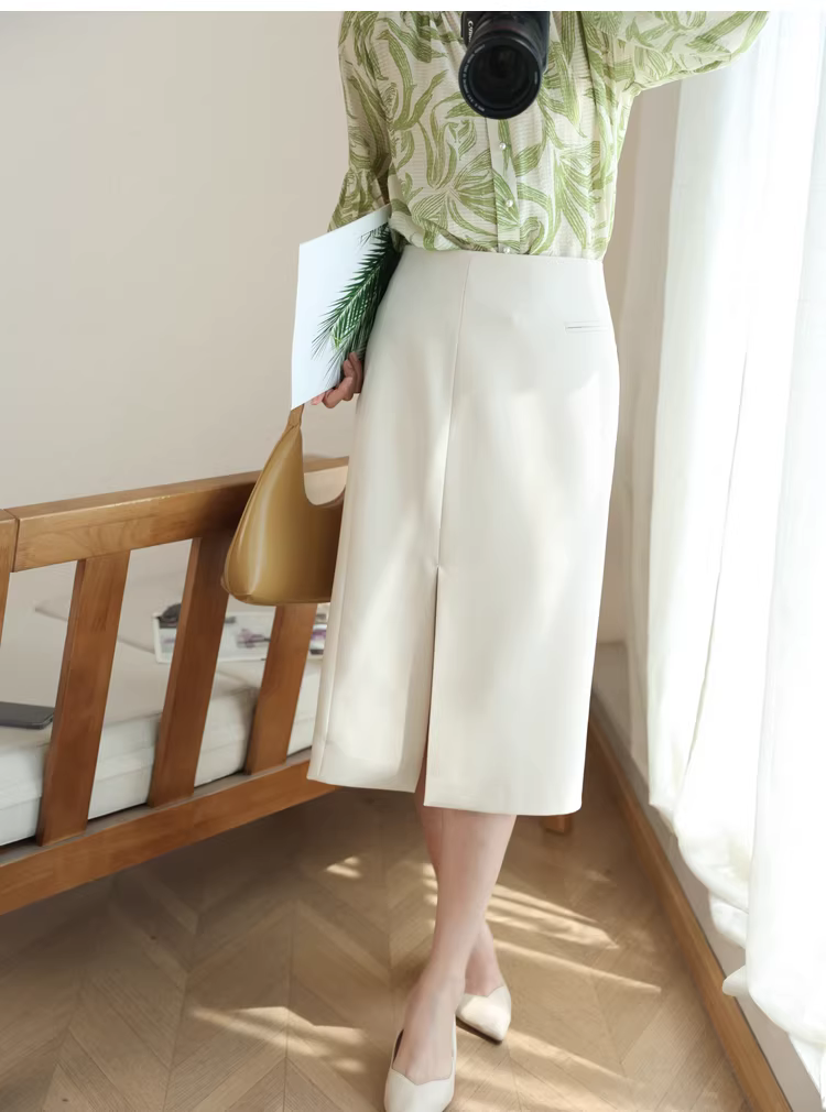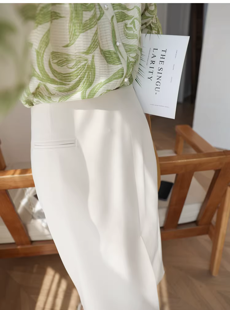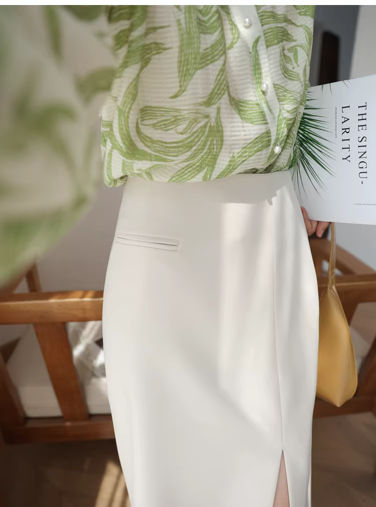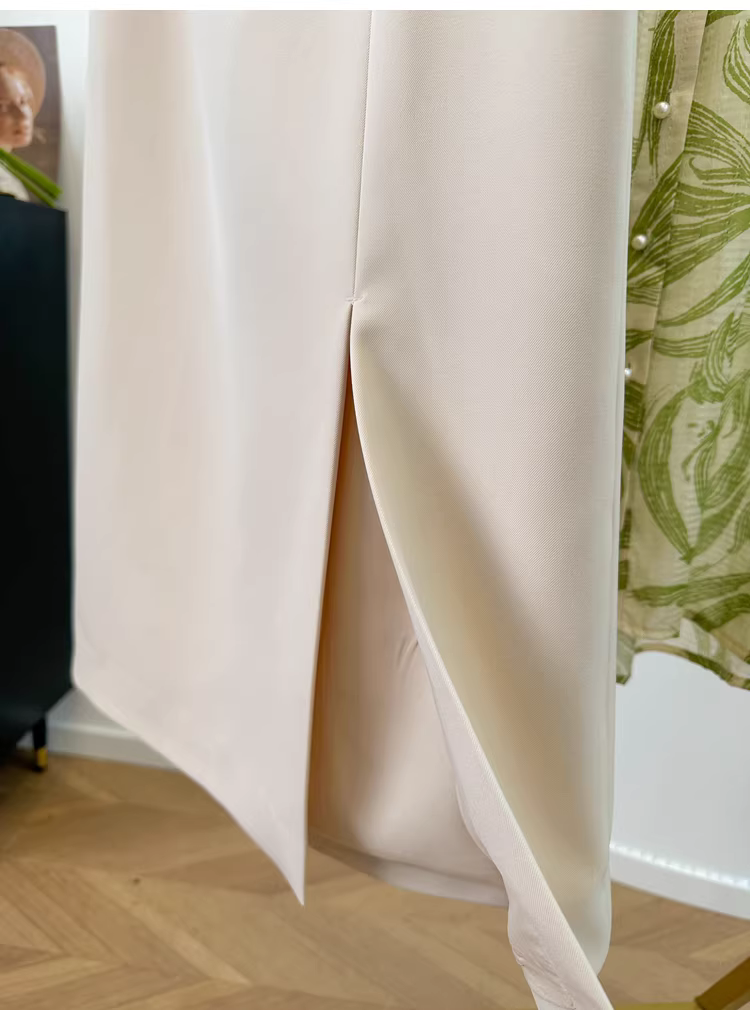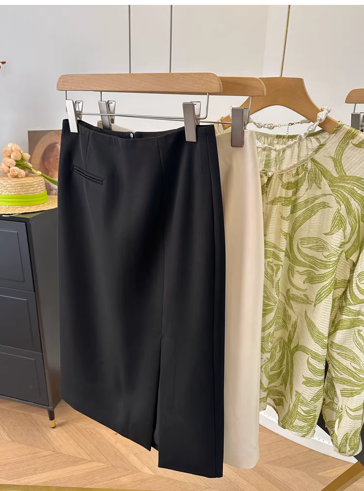 - Váy công sở cổ điển chống nhăn, chống nhăn, cạp cao, dáng chữ A, xẻ tà, màu trơn, kiểu dáng ôm dáng dành cho nữ mùa hè mới
