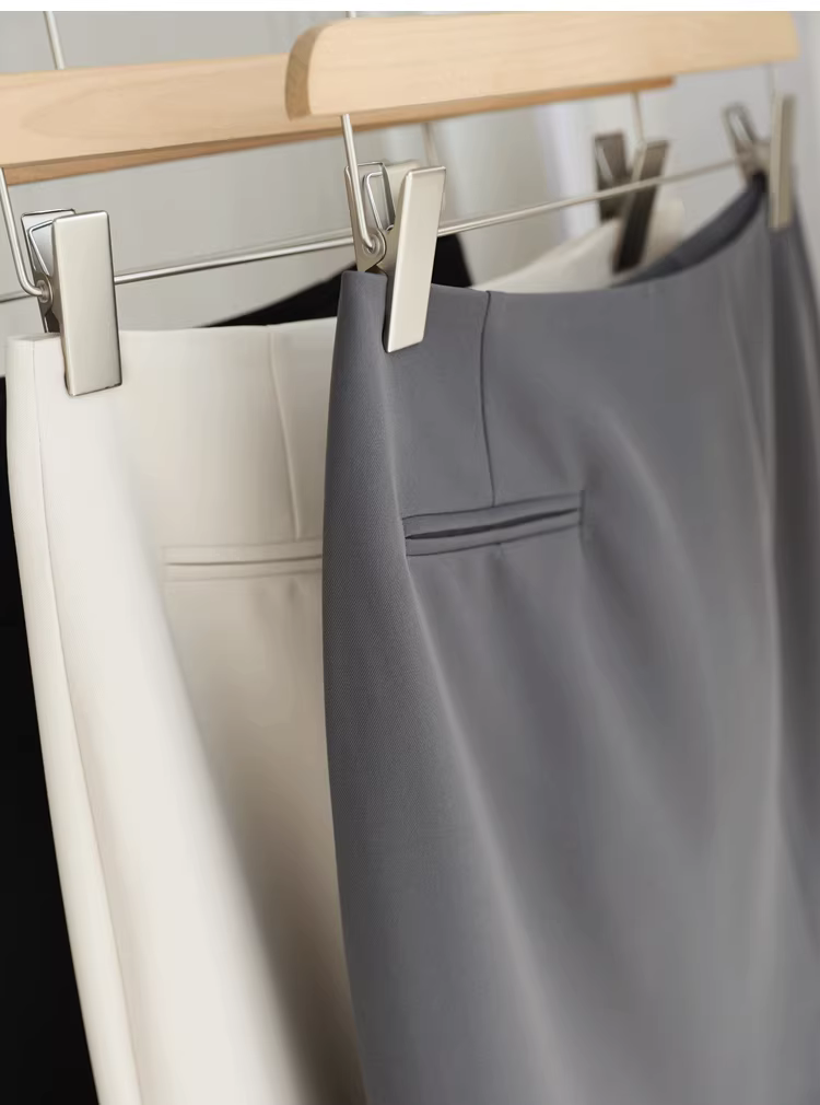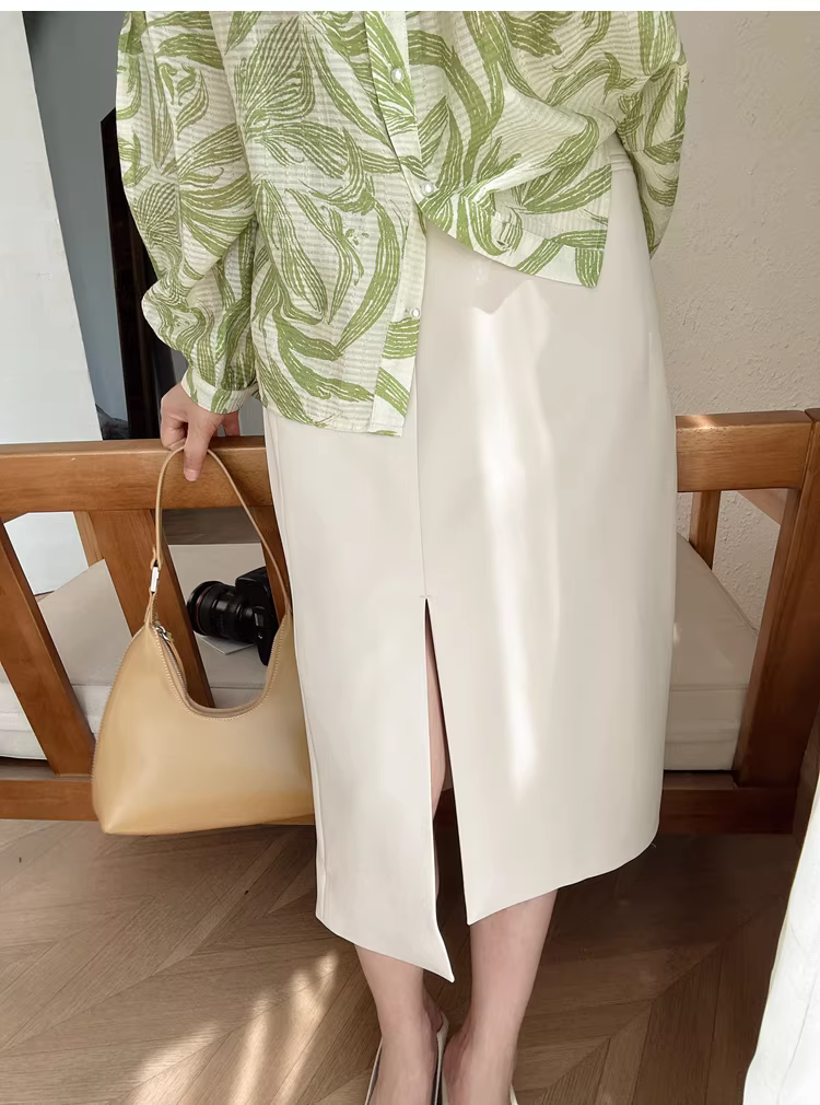 高腰位,前侧开衩设计,穿起来裙身有错落感