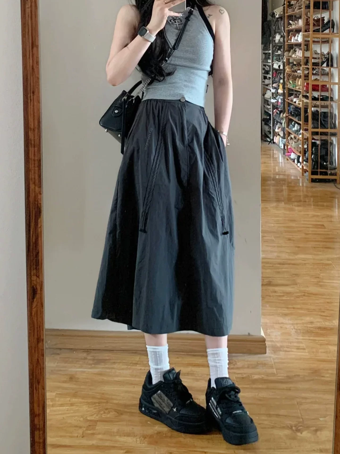 Váy công sở cổ điển kiểu Mỹ dành cho nữ, cỡ lớn mùa hè, lưng cao, che hông, giảm béo, dáng quả lê, váy chữ A