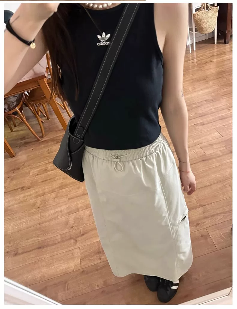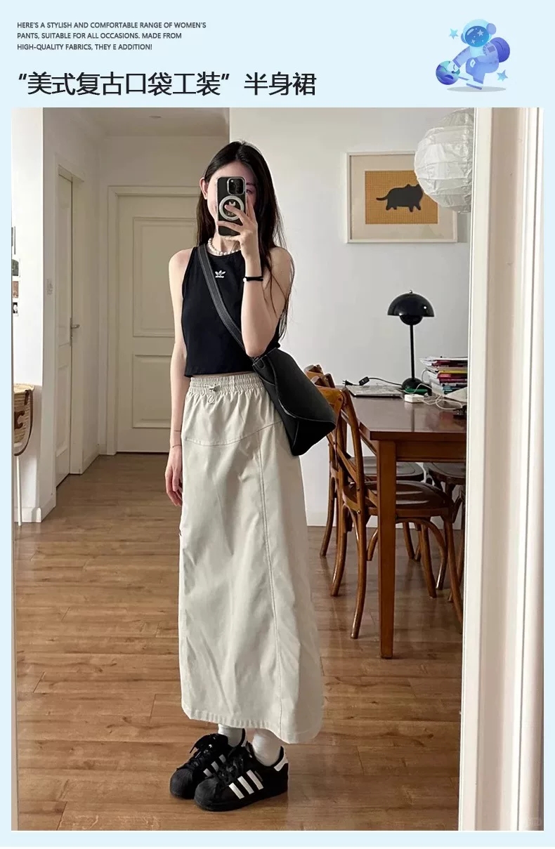 Váy công sở cổ điển kiểu Mỹ dành cho nữ, phong cách mùa hè mới, cỡ lớn, lưng cao, che hông, giảm béo, váy chữ A dài vừa phải.