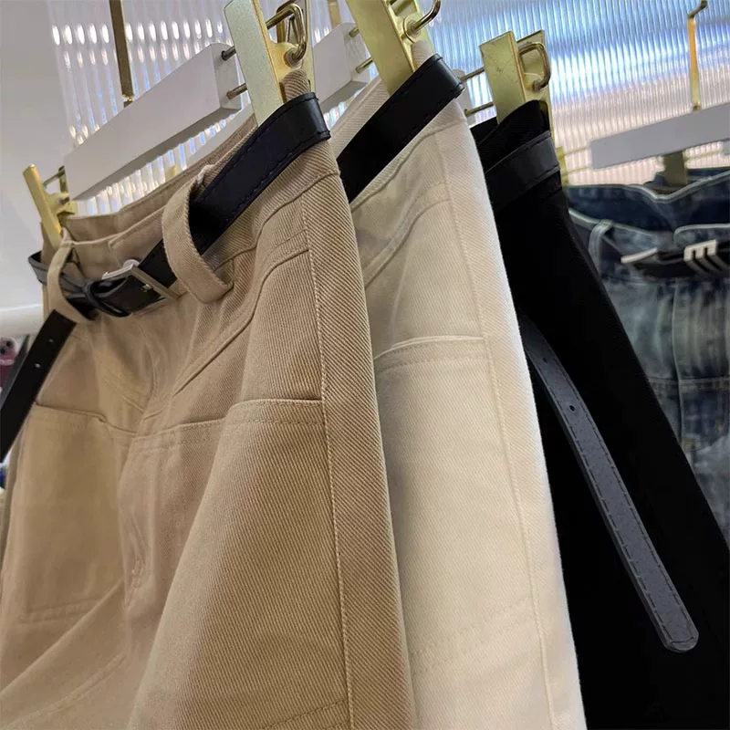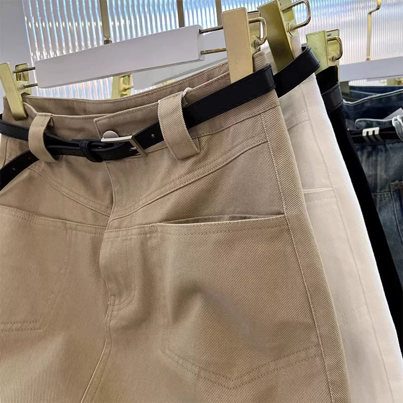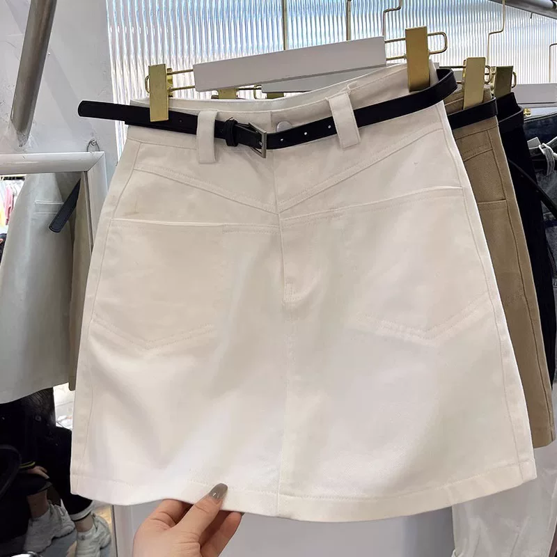 - Váy công sở màu kaki dành cho nữ, cỡ lớn mùa hè, váy nửa thân denim, lưng cao, che hông, váy bút chì chữ A thon gọn, váy ngắn.