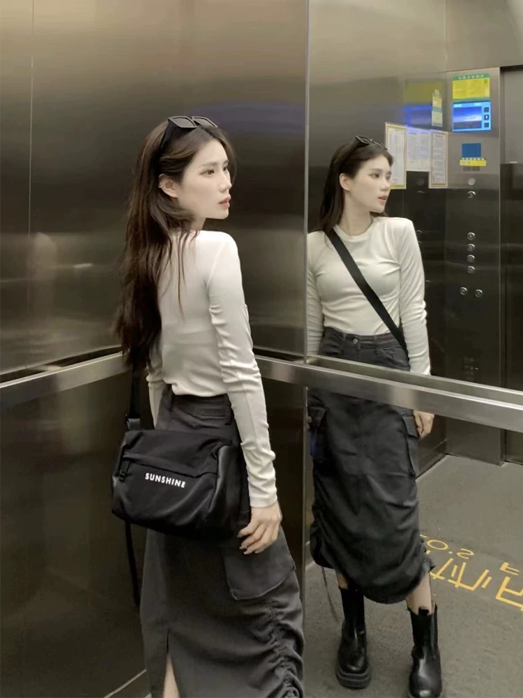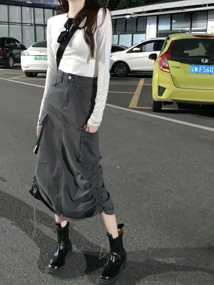 Váy công sở màu xám dành cho nữ, váy chữ A dáng quả lê mùa hè, váy dài vừa phải, cạp cao, tôn dáng, dành cho nữ cỡ lớn.
