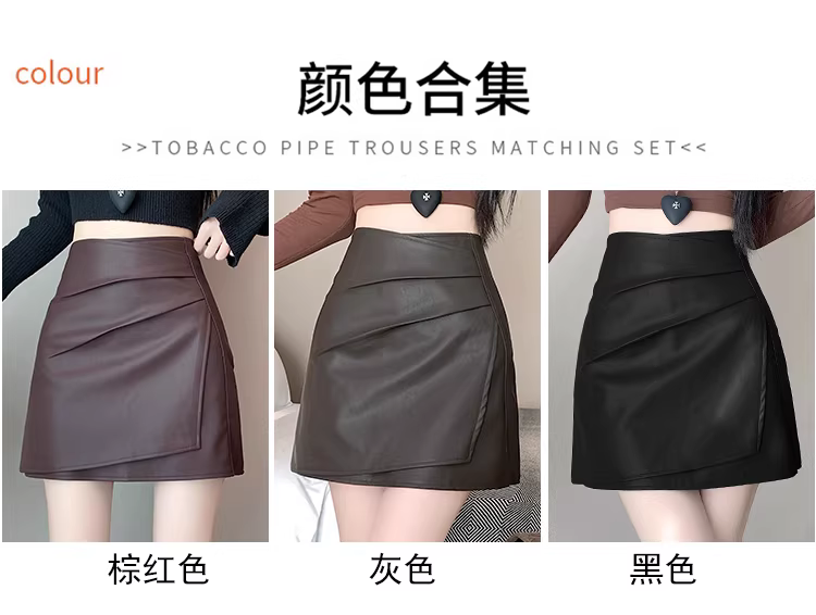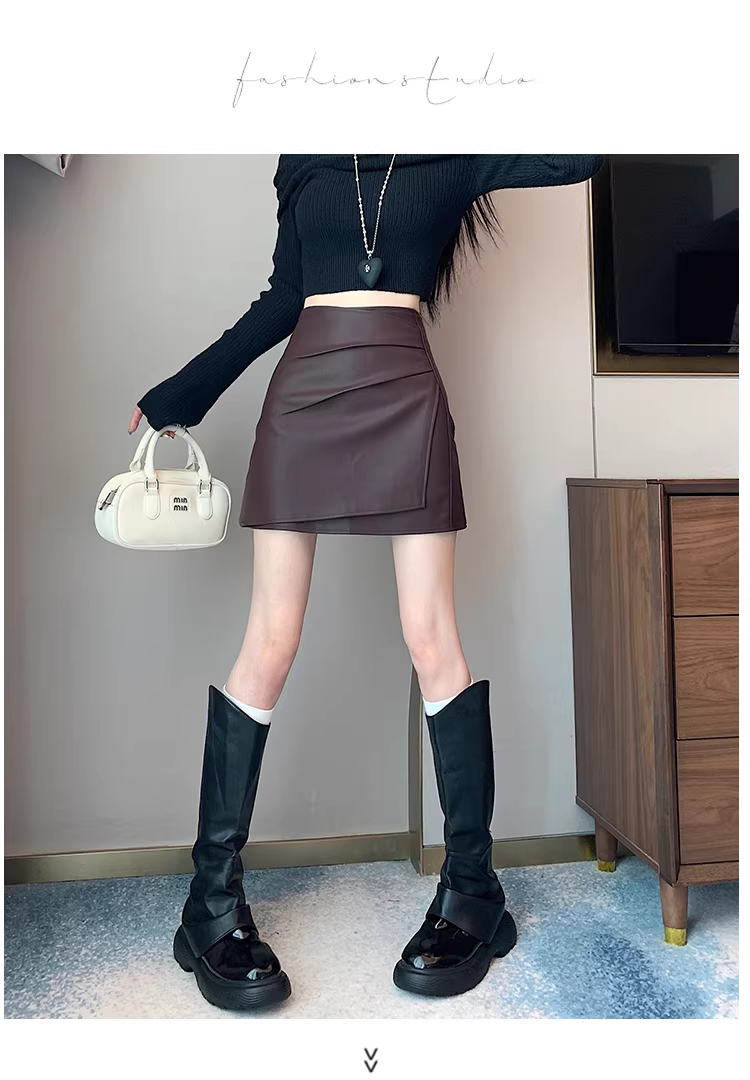 Váy da đỏ, váy bút chì bất đối xứng thu đông nữ, váy ôm hông, váy nửa thân rất đẹp, váy ngắn da PU