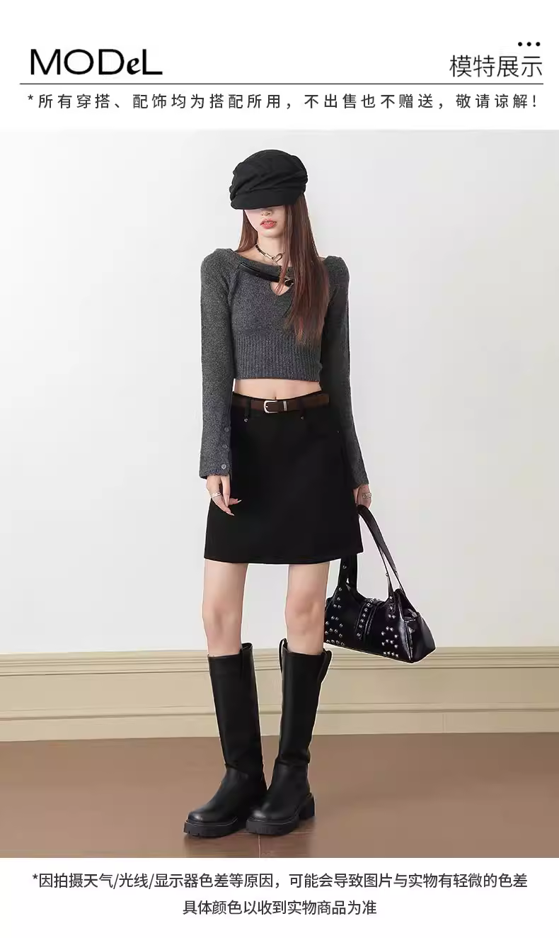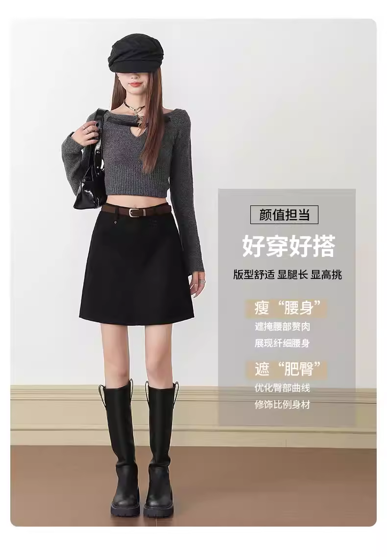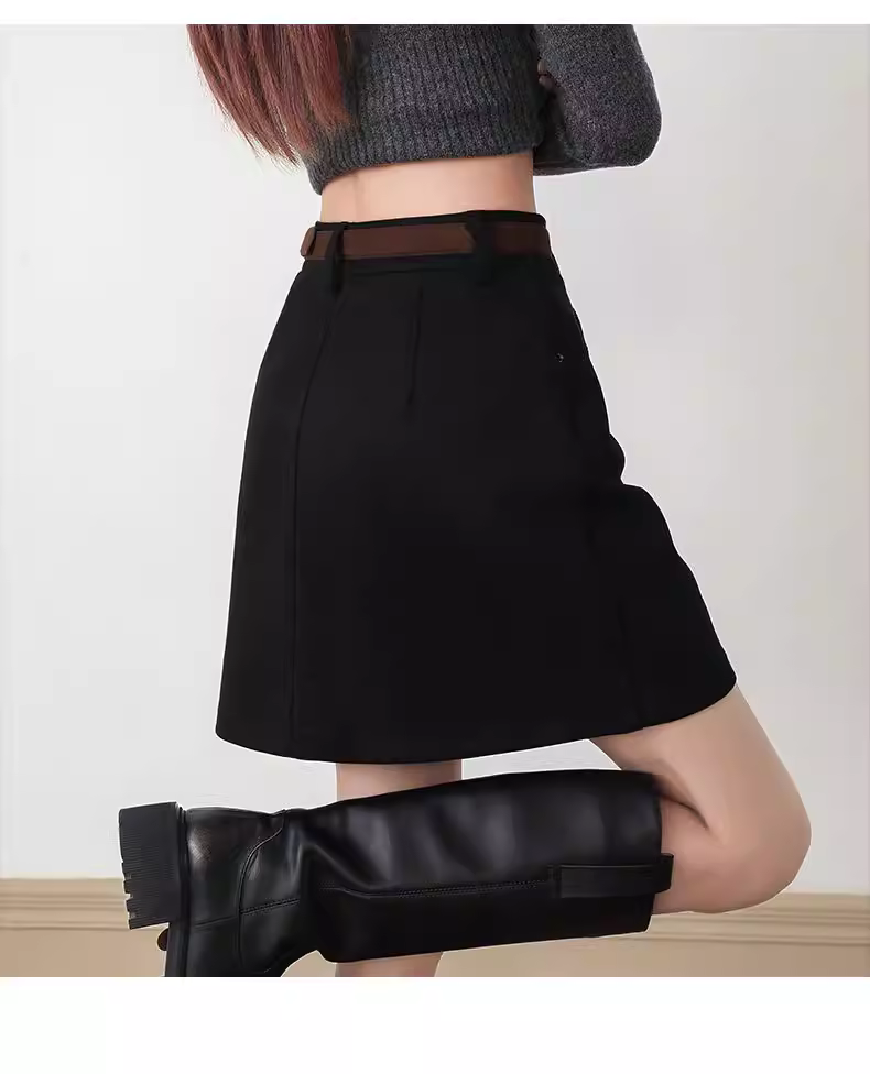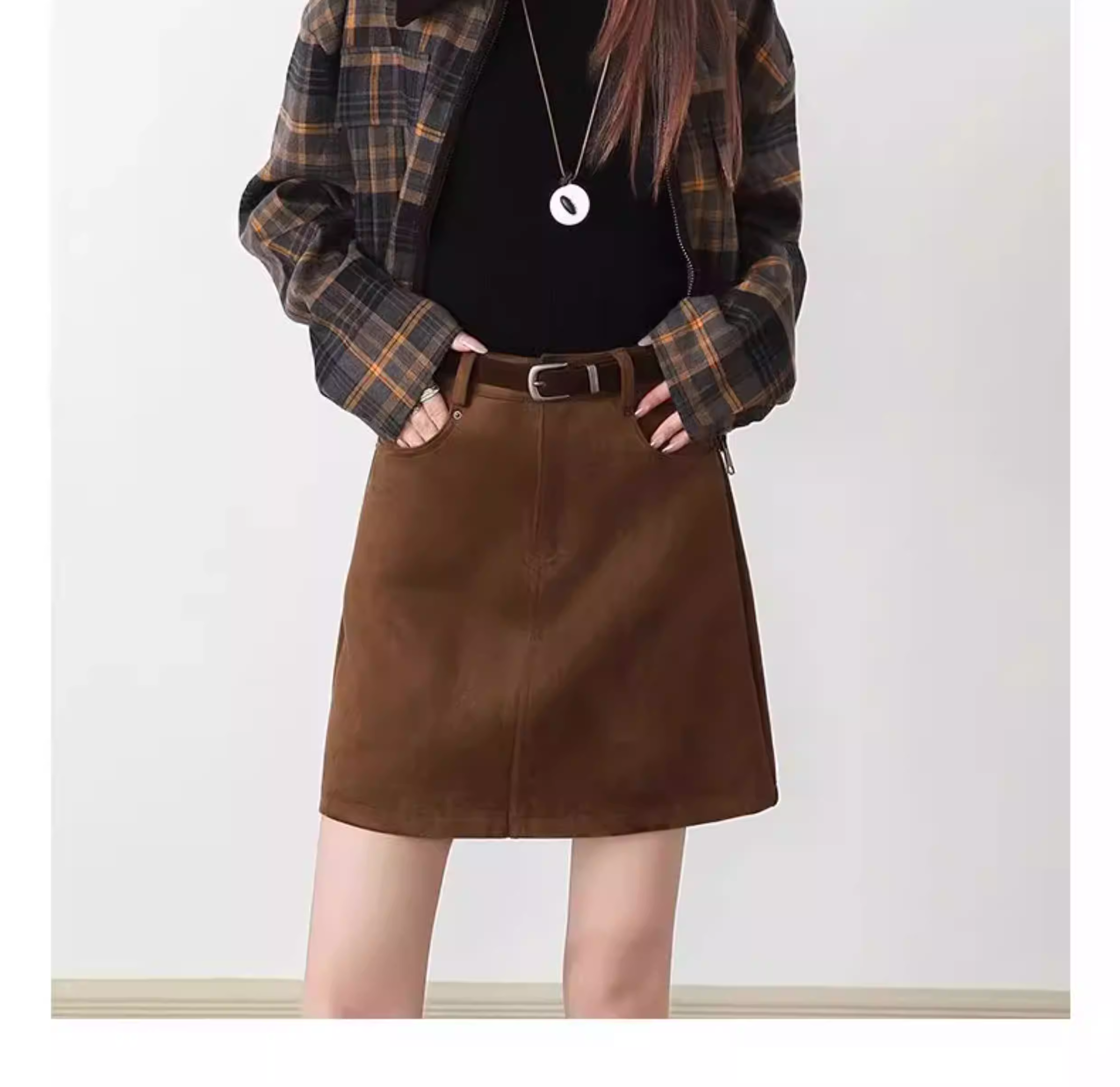 - Váy da lộn nâu La Chapelle dành cho nữ 2025, kiểu dáng mới thu đông, cạp cao, tôn dáng, ôm body, ngắn.