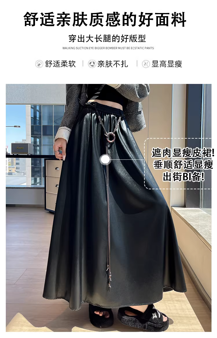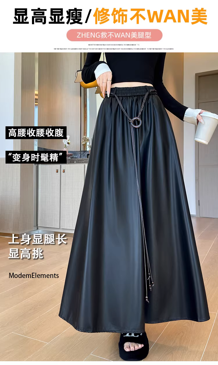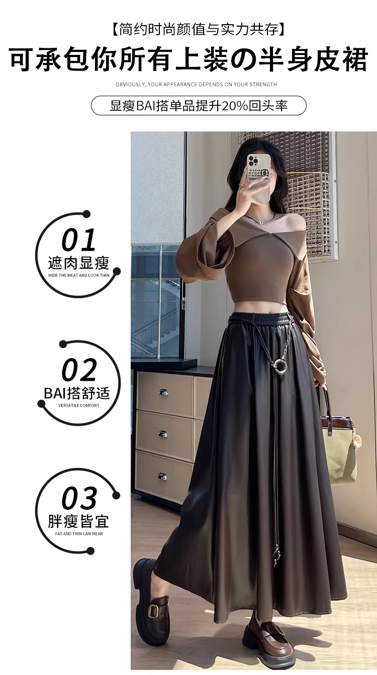 Váy da nâu, váy dù dài trung bình mùa thu đông dành cho nữ, váy nửa thân rất đẹp, váy dài, váy da PU