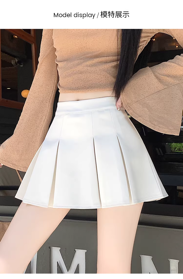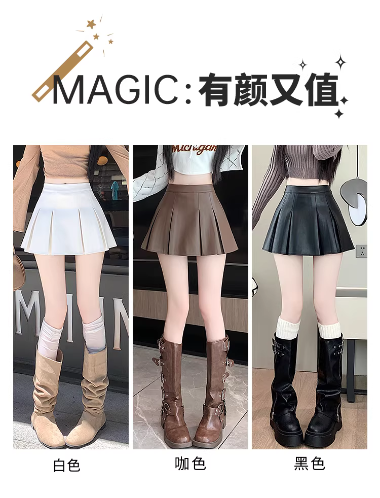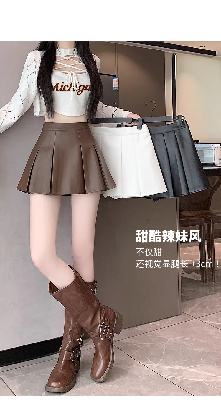 - Váy da nâu, váy xếp ly da PU thu đông nữ, váy rất đẹp, váy JK, váy mini gợi cảm