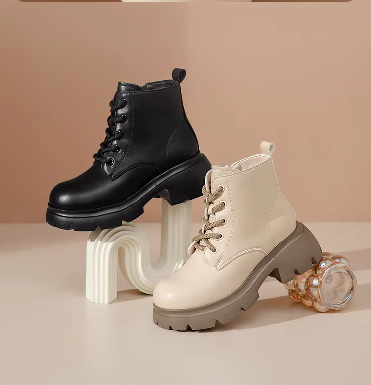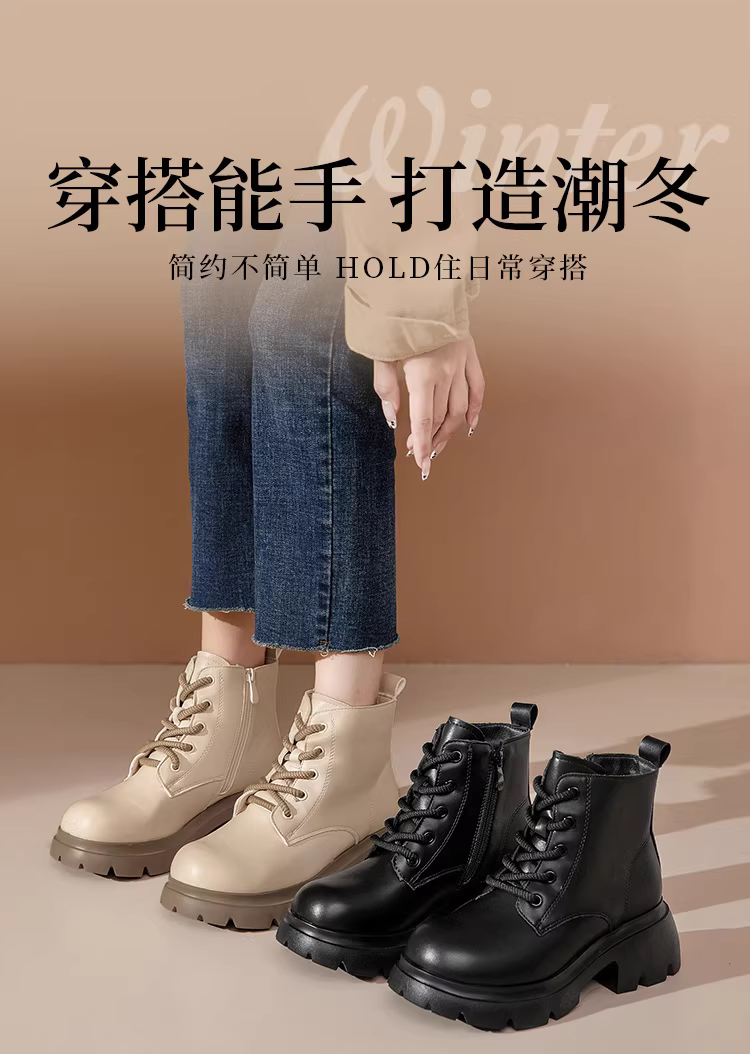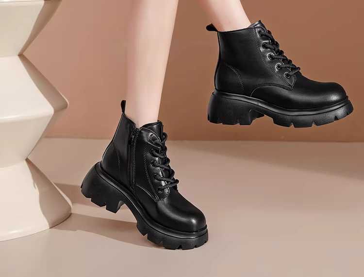 - Váy Dadong phối với bốt Martin nữ, kiểu mới 2025, bốt ngắn phong cách Anh quốc đang thịnh hành, bốt đế dày màu đen dành cho nữ, mùa thu đông.