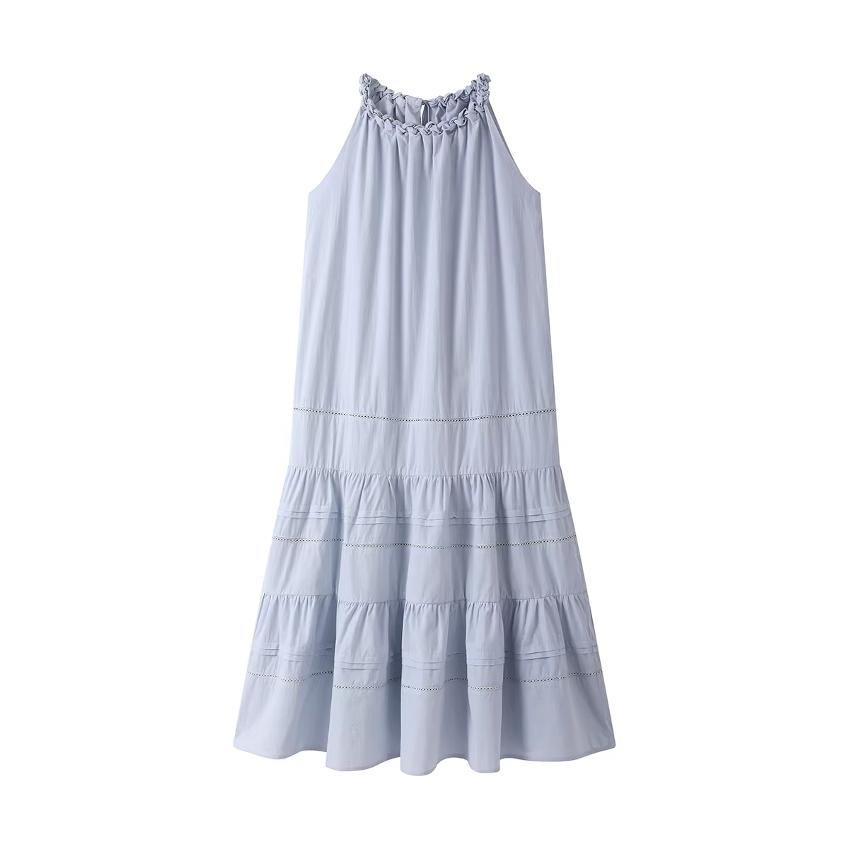 Váy dây buộc kiểu Pháp dành cho nữ, váy xếp tầng không tay đa năng, kiểu dáng rộng rãi mùa hè