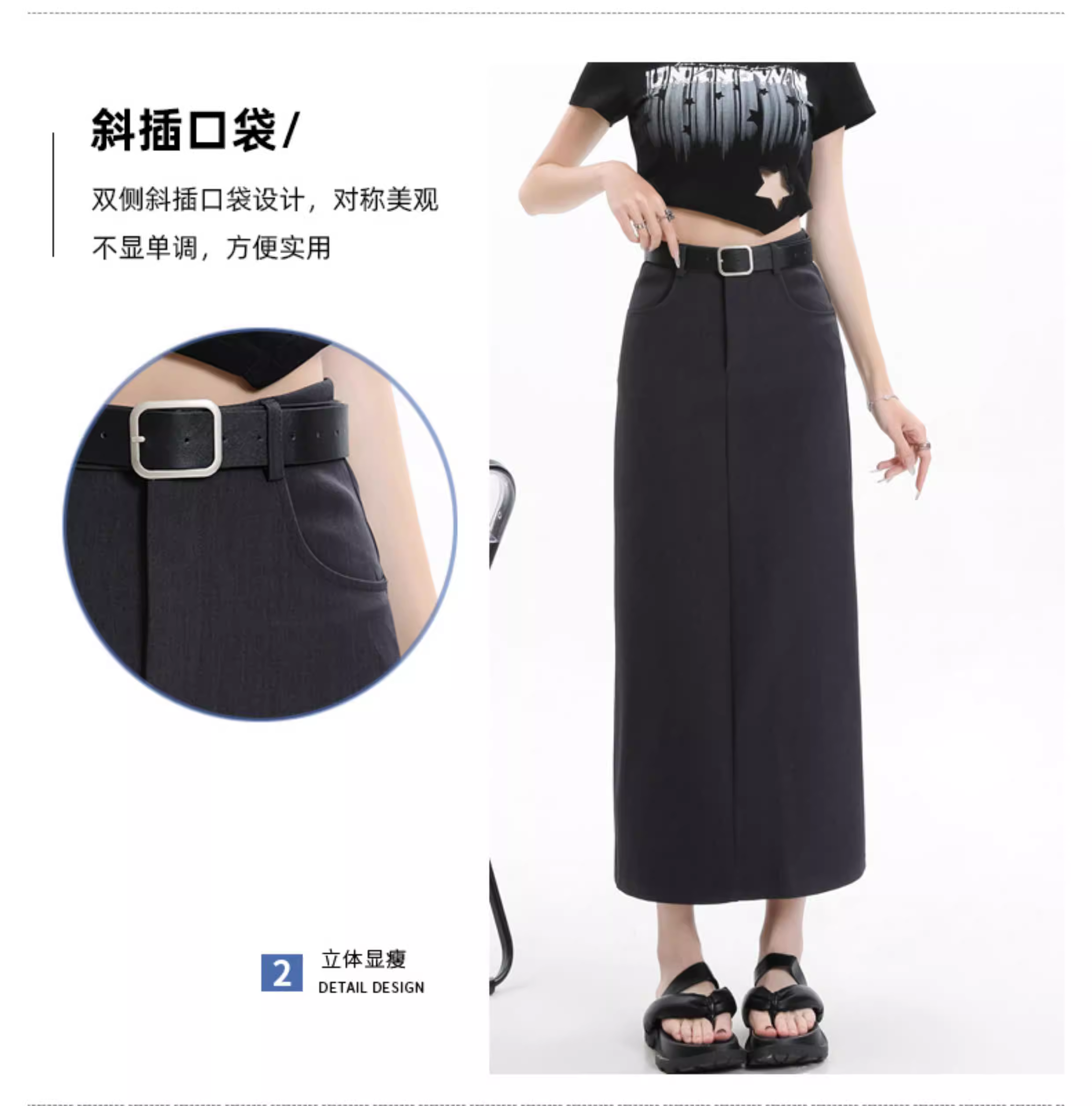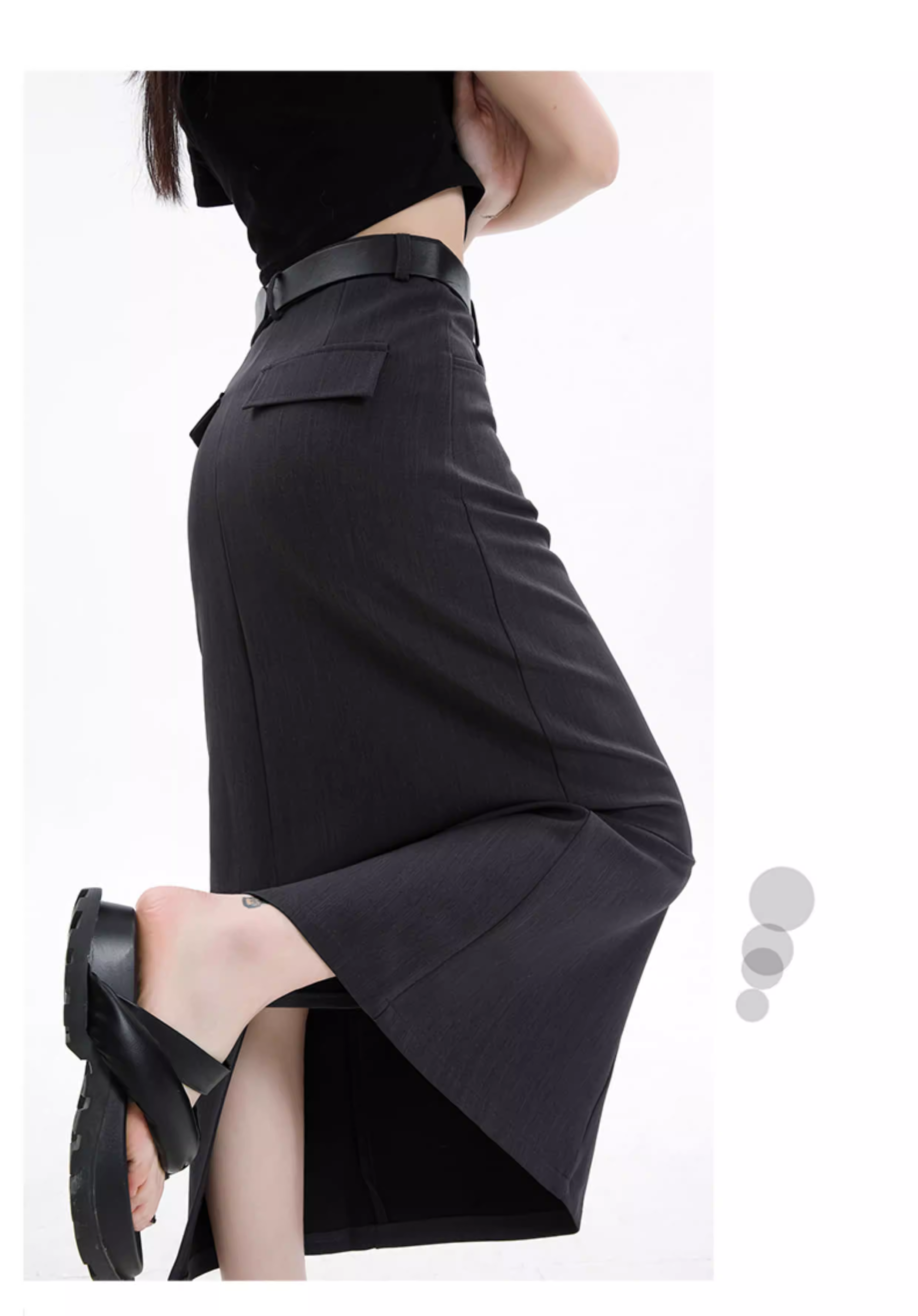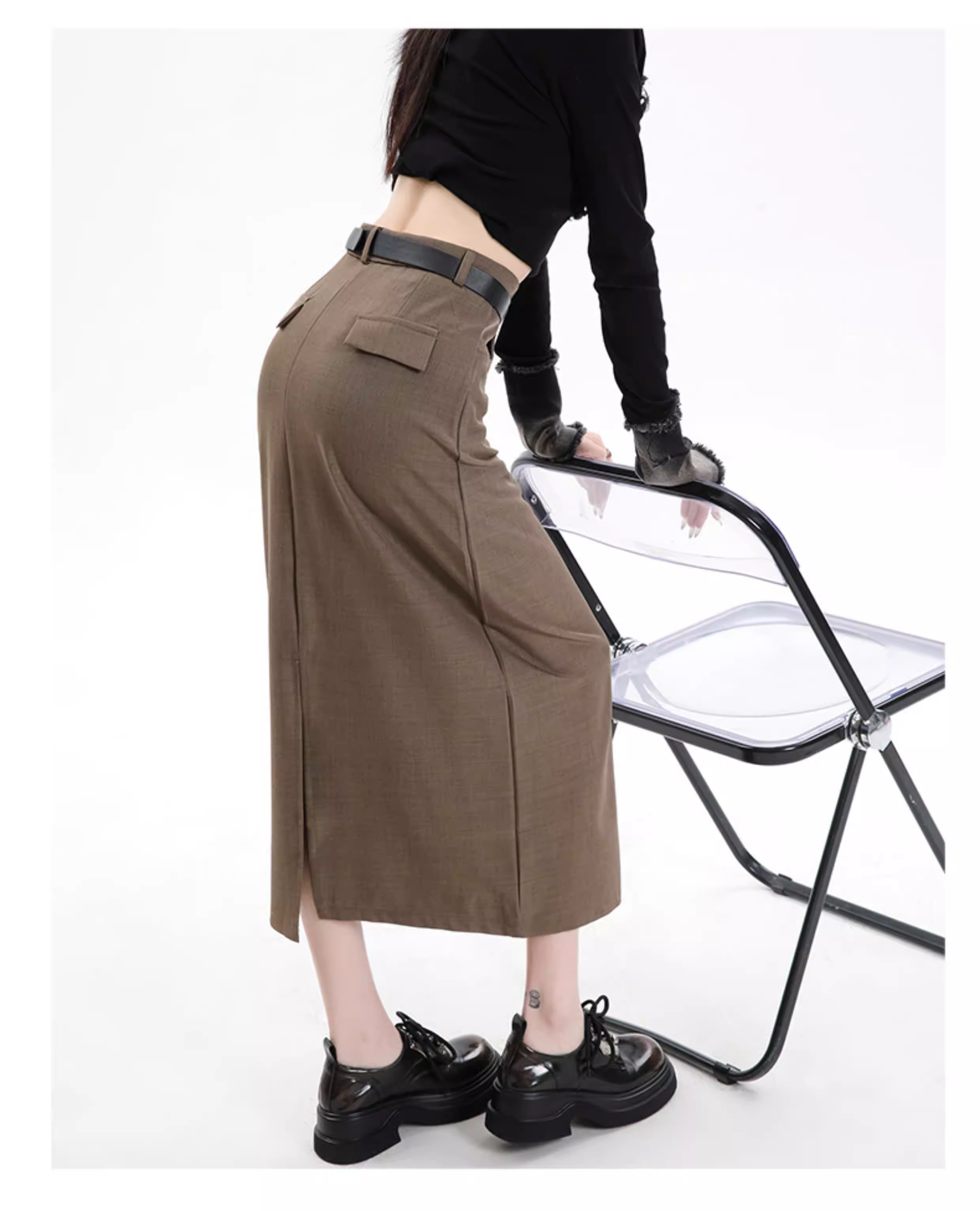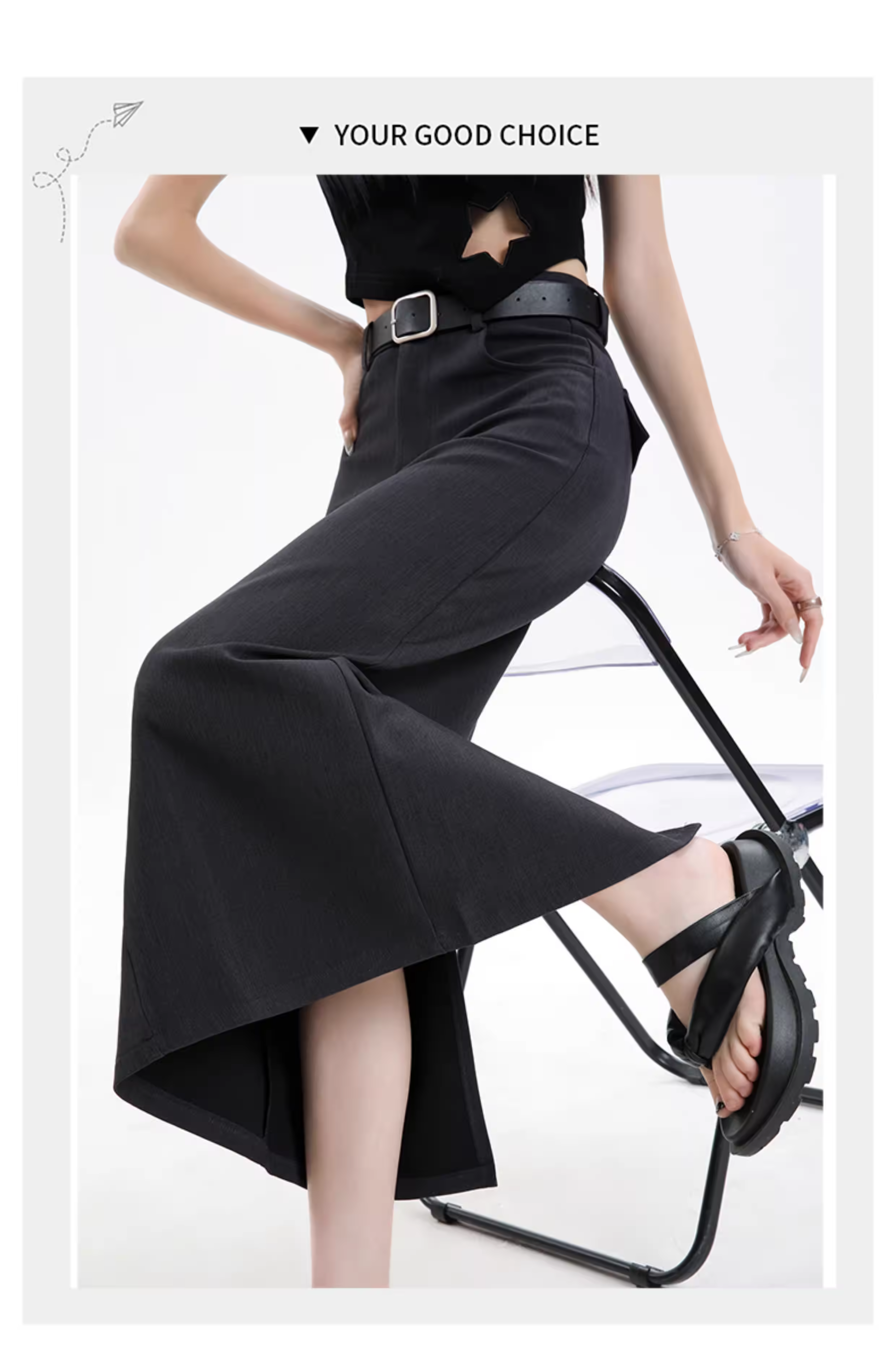 - Váy đen La Chapelle dành cho nữ, kiểu dáng mới xuân thu 2025, cạp cao, dài ngang đùi, xẻ tà, dáng chữ A, kiểu bút chì.