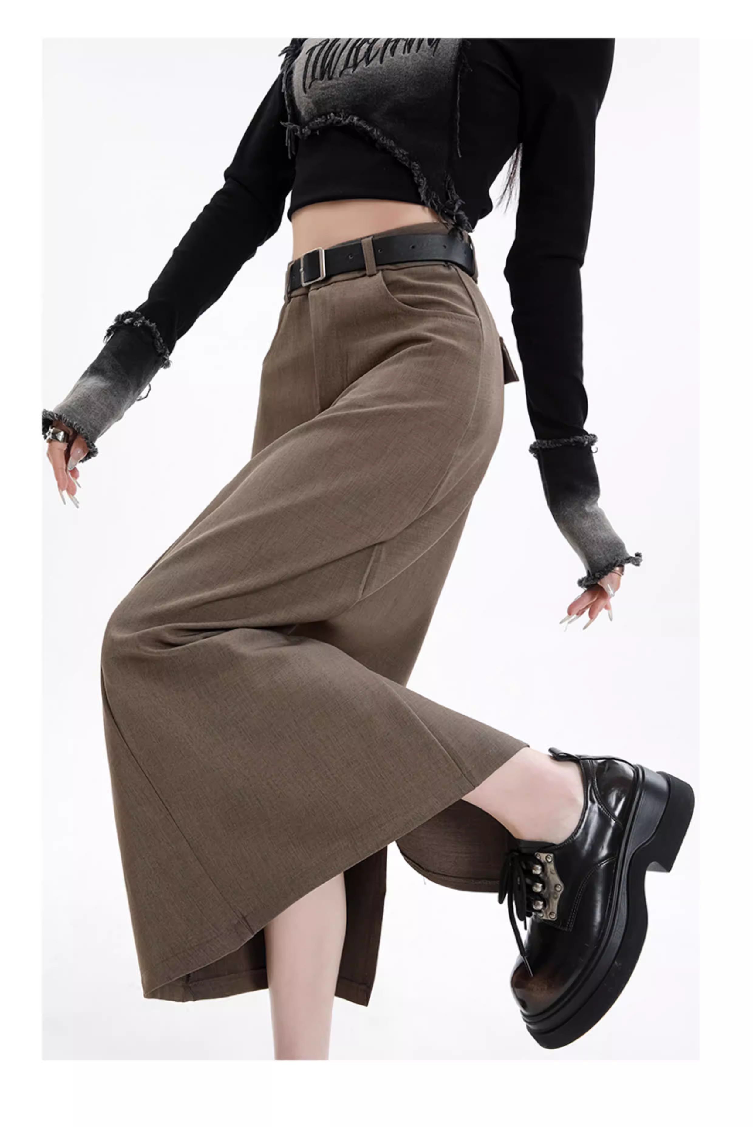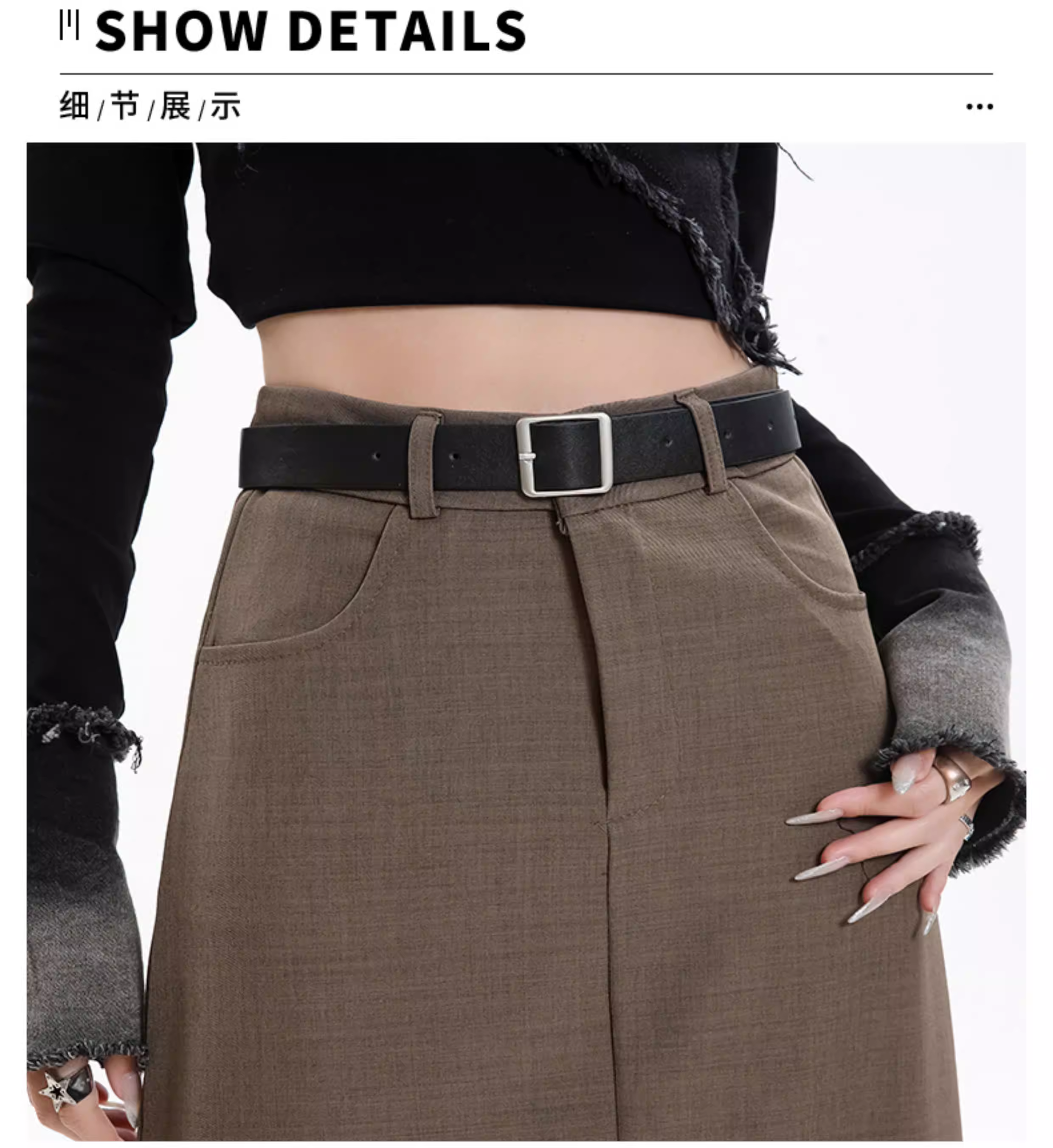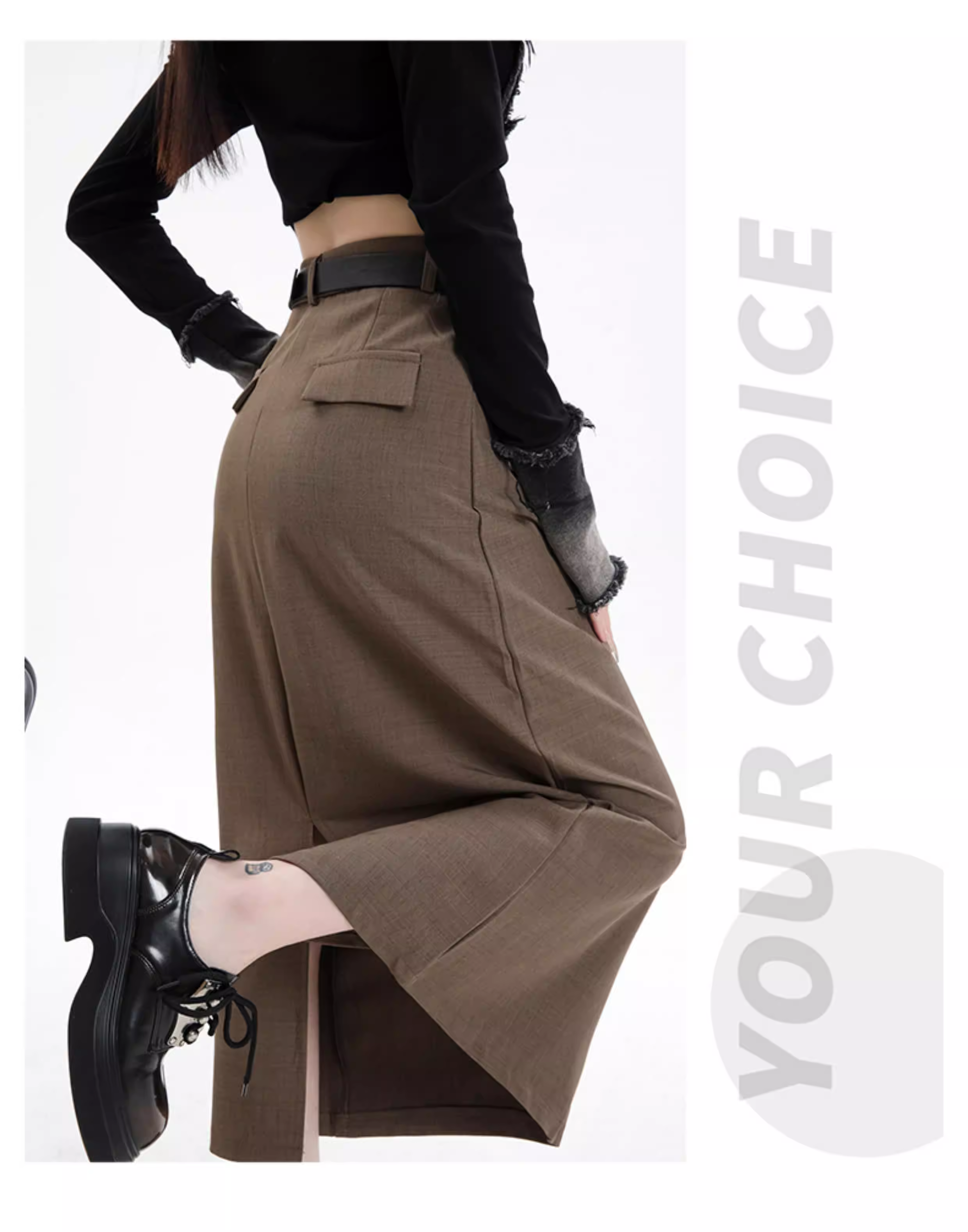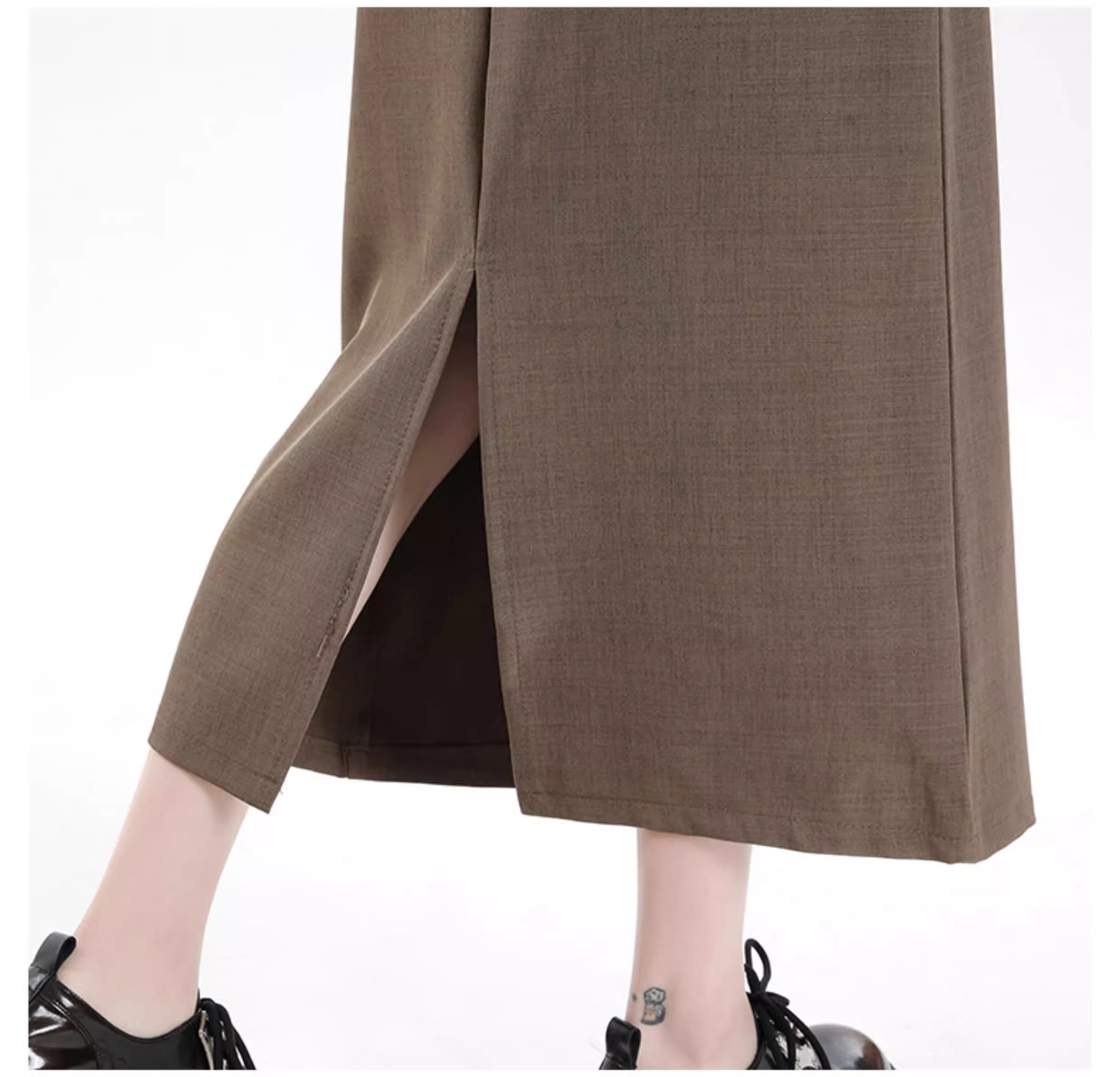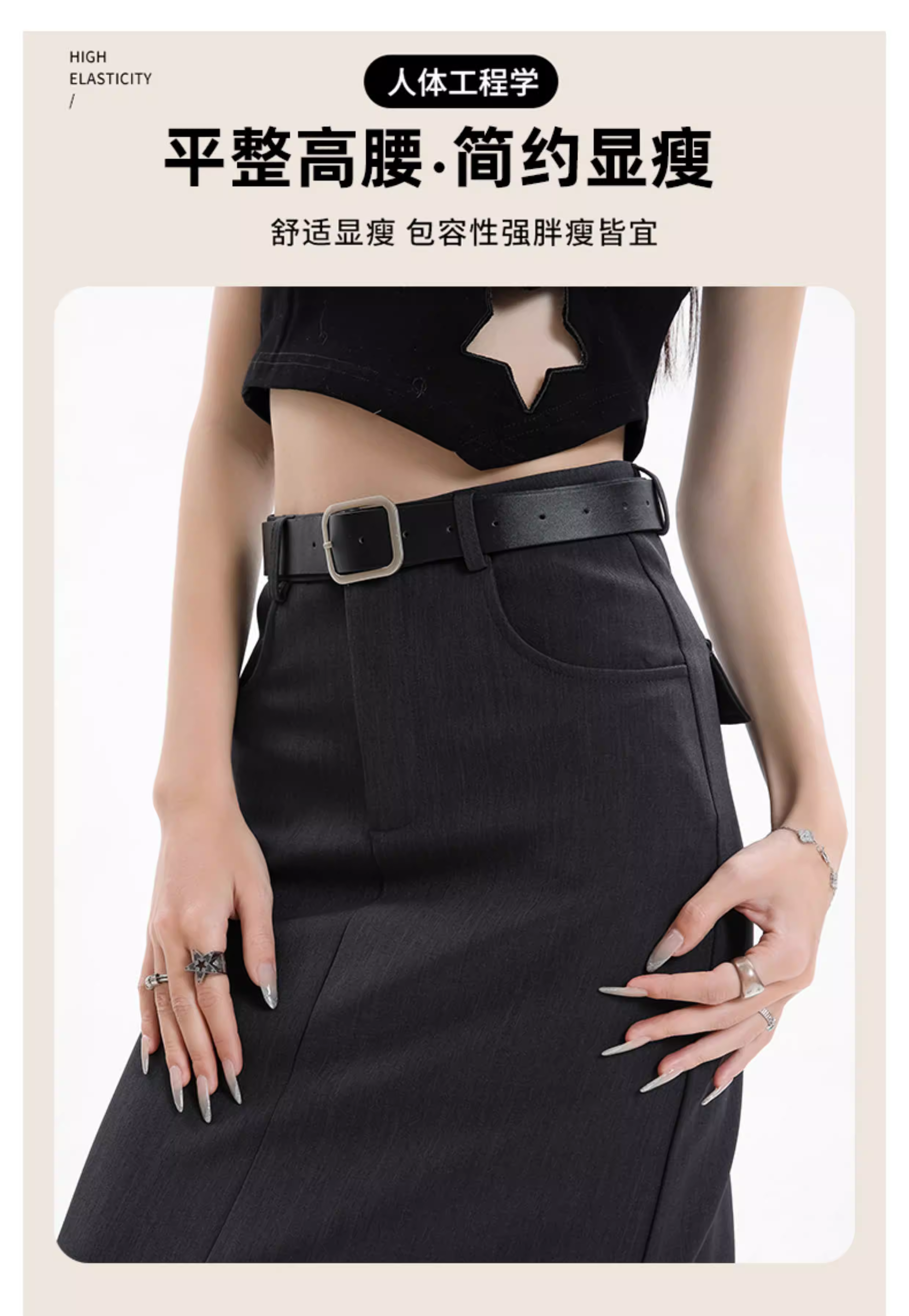 - Váy đen La Chapelle dành cho nữ, kiểu dáng mới xuân thu 2025, cạp cao, dài ngang đùi, xẻ tà, dáng chữ A, kiểu bút chì.