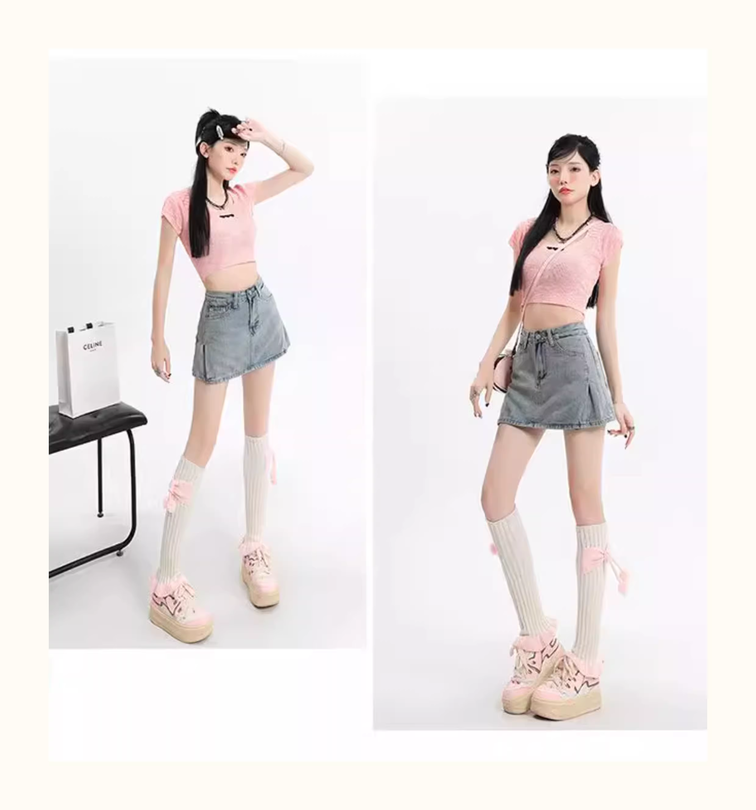 - Váy denim bút chì màu sáng La Chapelle dành cho nữ 2025, kiểu dáng mới mùa hè, cạp cao, dáng chữ A, ngắn, dành cho người nhỏ nhắn