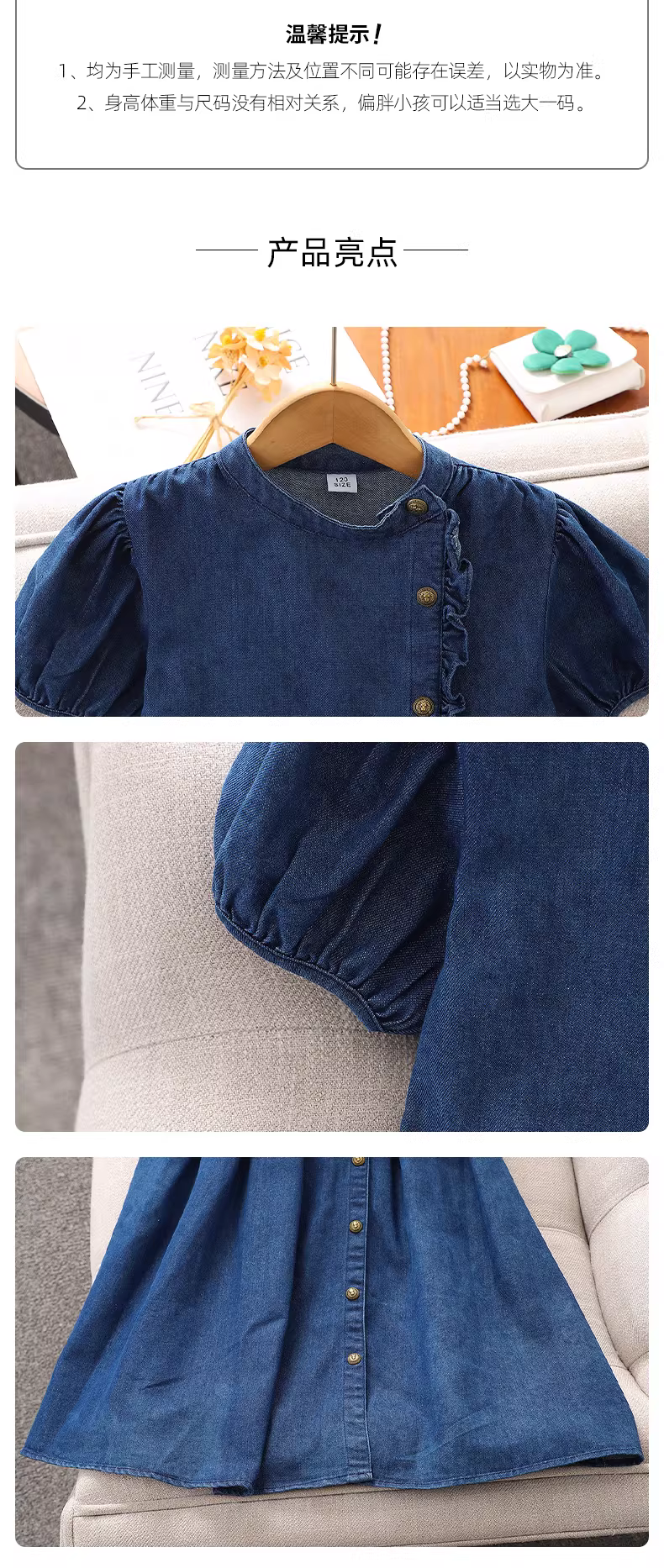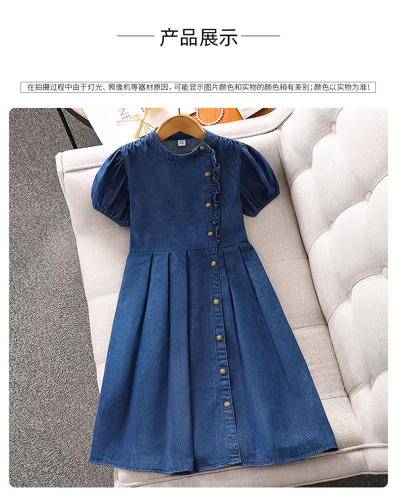 - Váy denim ngắn tay thời trang cho bé gái, đầm hè 2025, kiểu dáng trẻ em, eo thon, váy thường ngày, đầm hè