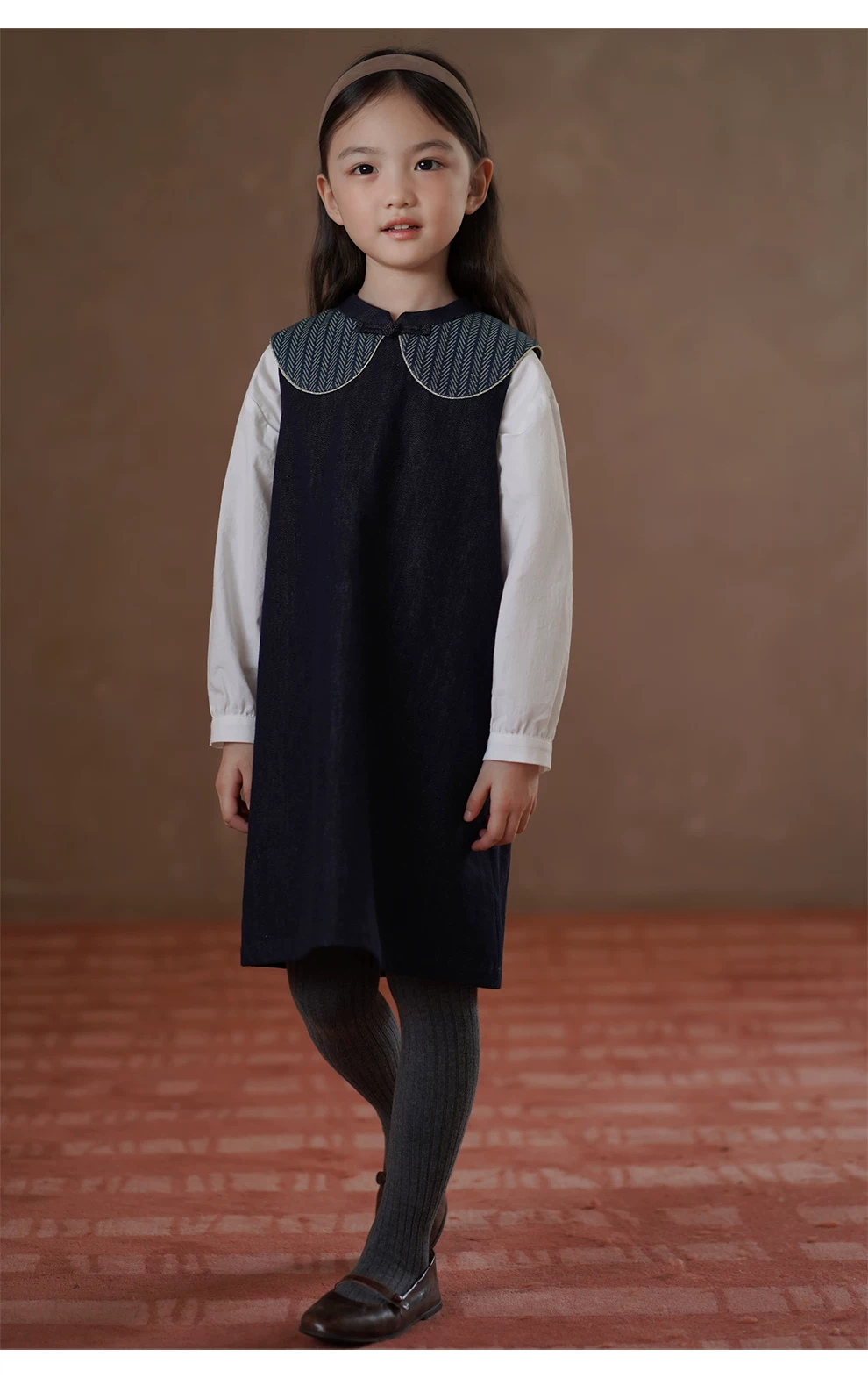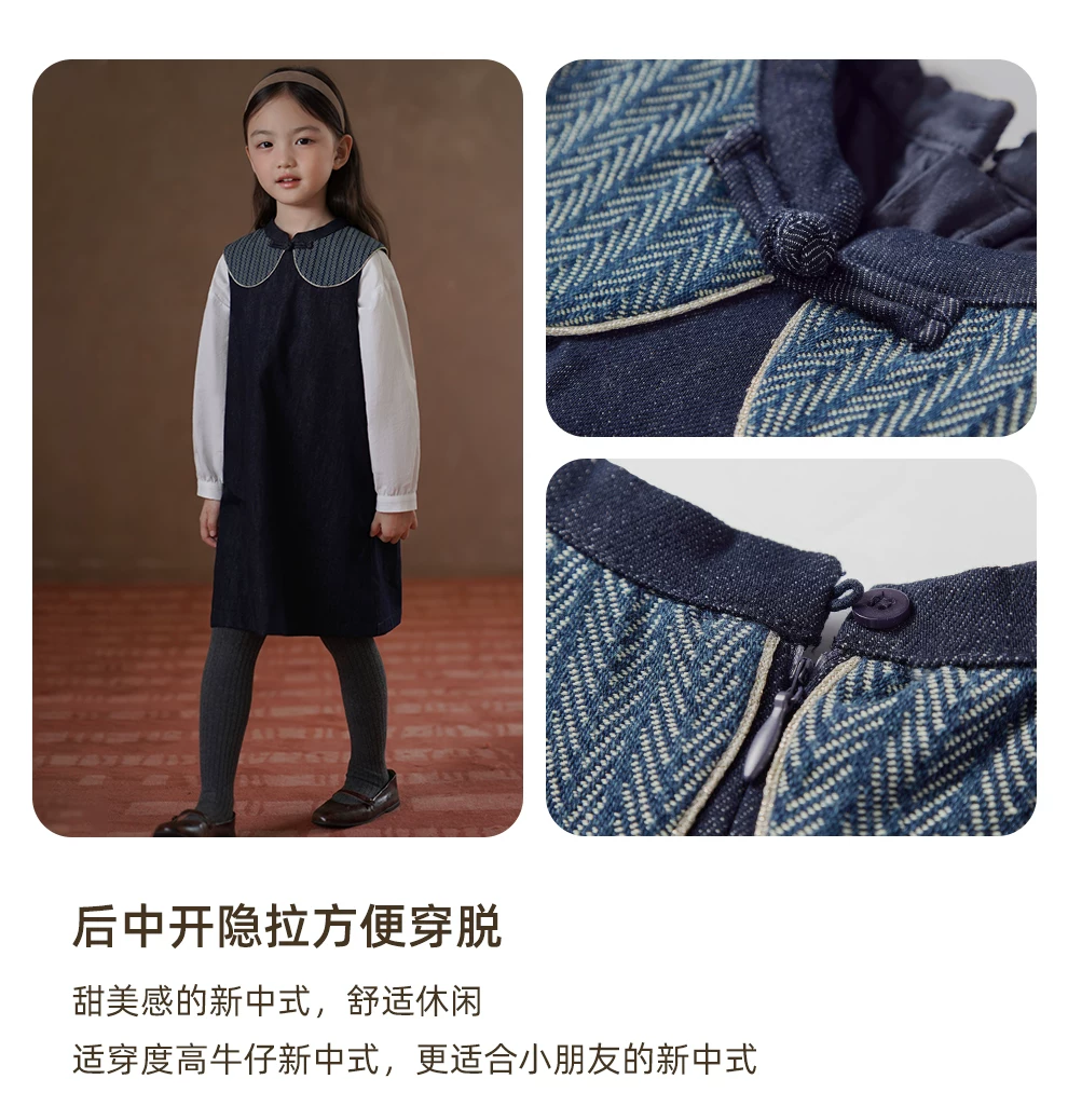 Váy denim trẻ em cho mùa xuân và mùa thu, váy kiểu Trung Quốc mới cho bé gái, váy hai dây dài vừa phải, quần áo mùa thu mới cho bé gái.