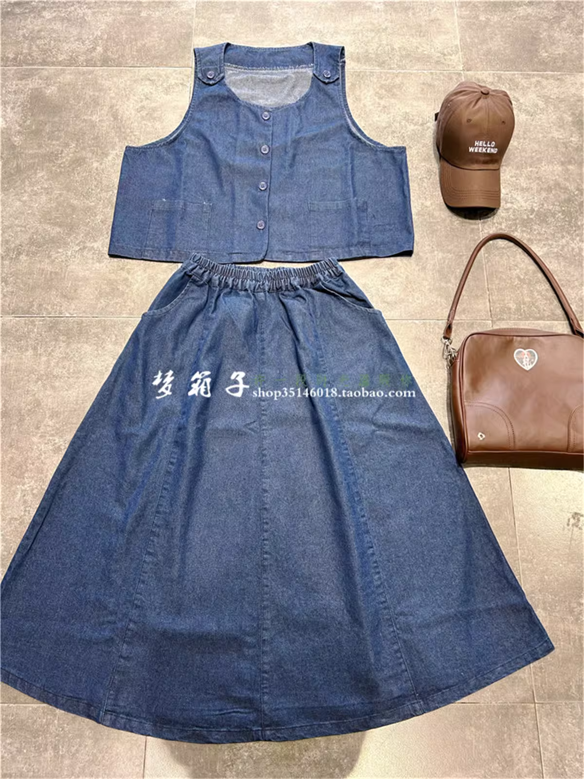 上衣马甲,下面松紧腰牛仔裙