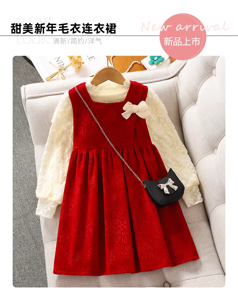Váy đỏ bé gái thu đông 2025, trang phục Tết, bộ đồ trẻ em, váy kiểu Chanel, trang phục Tết cho bé gái