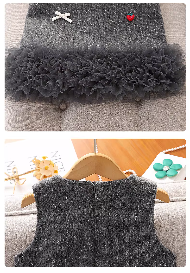 Váy đỏ bé gái thu đông, trang phục Tết thiếu nhi, váy kiểu vest, kiểu mới 2025, váy bánh ngọt phong cách Chanel nhỏ nhắn cho bé gái