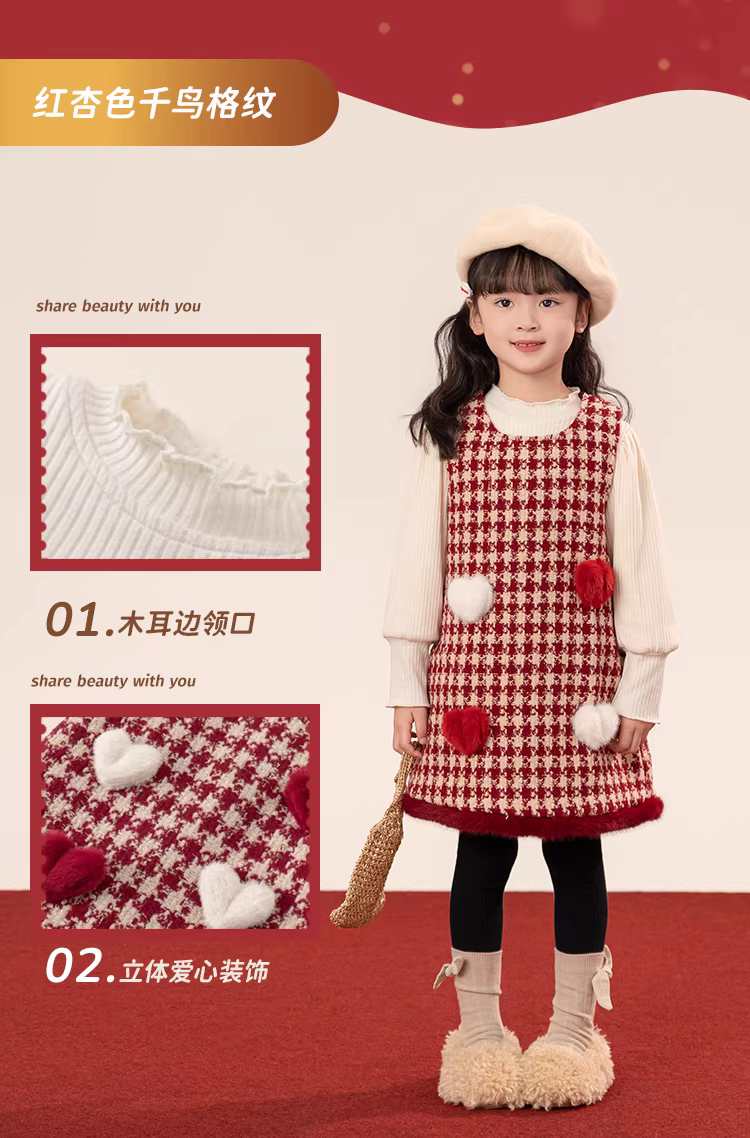 - Váy đỏ bé gái, trang phục trẻ em mùa đông 2025, váy sinh nhật 1 tuổi, váy Giáng sinh