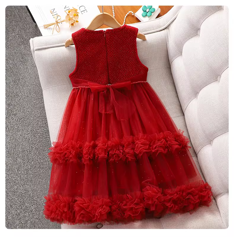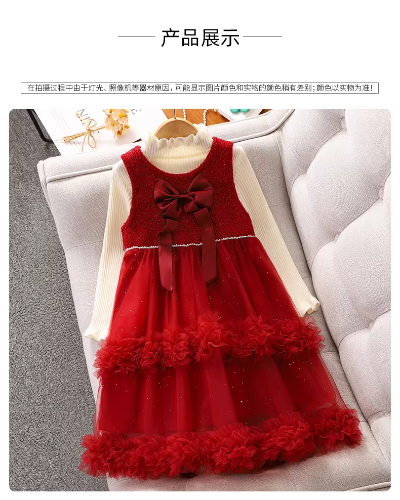 - Váy đỏ Tết thiếu nhi, đầm áo len thu đông 2025 trẻ em, váy công chúa Tết cho bé gái lớn