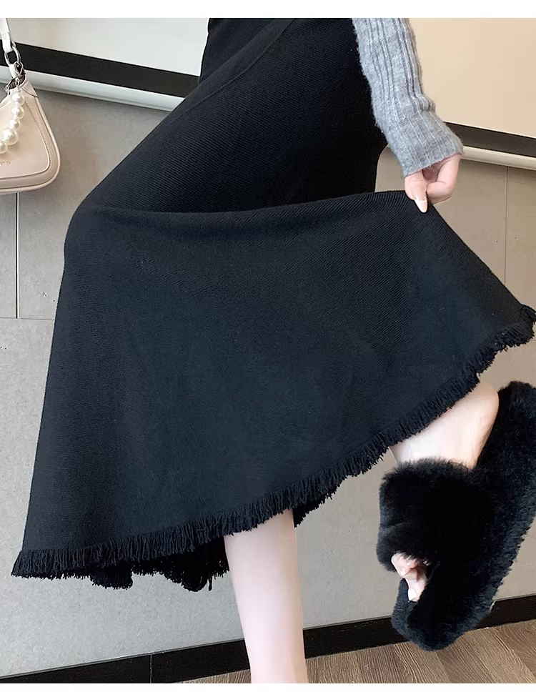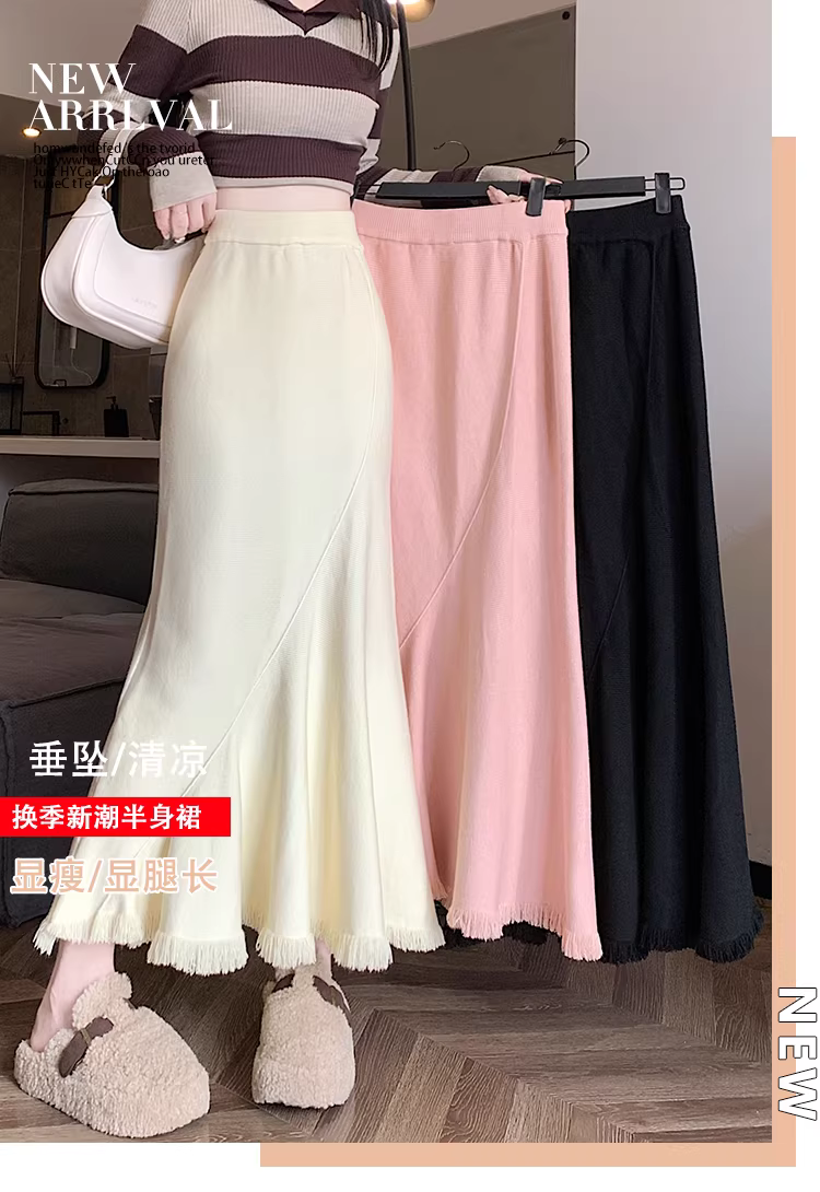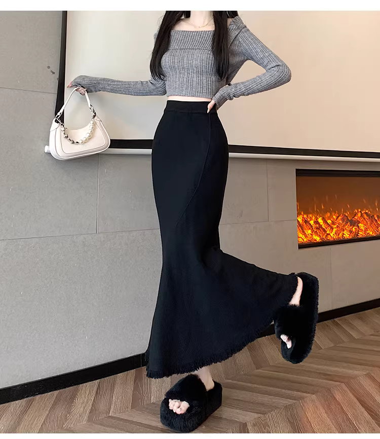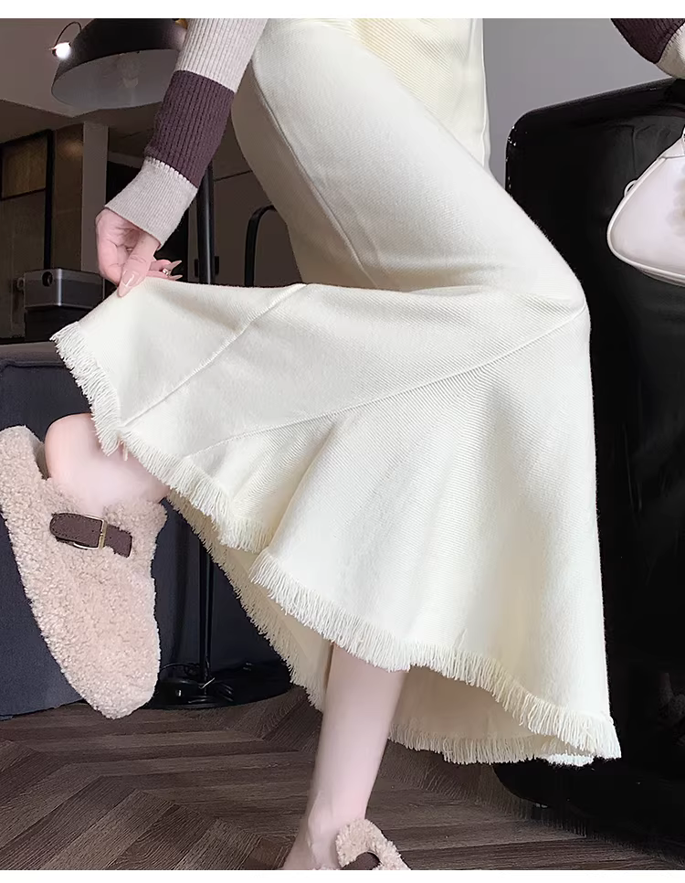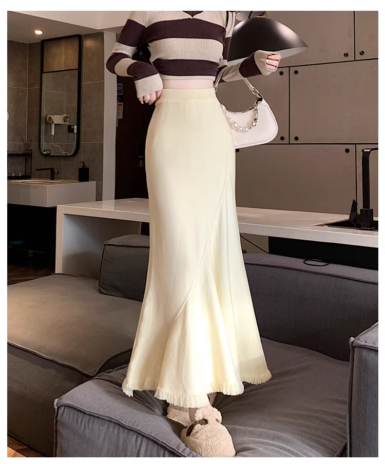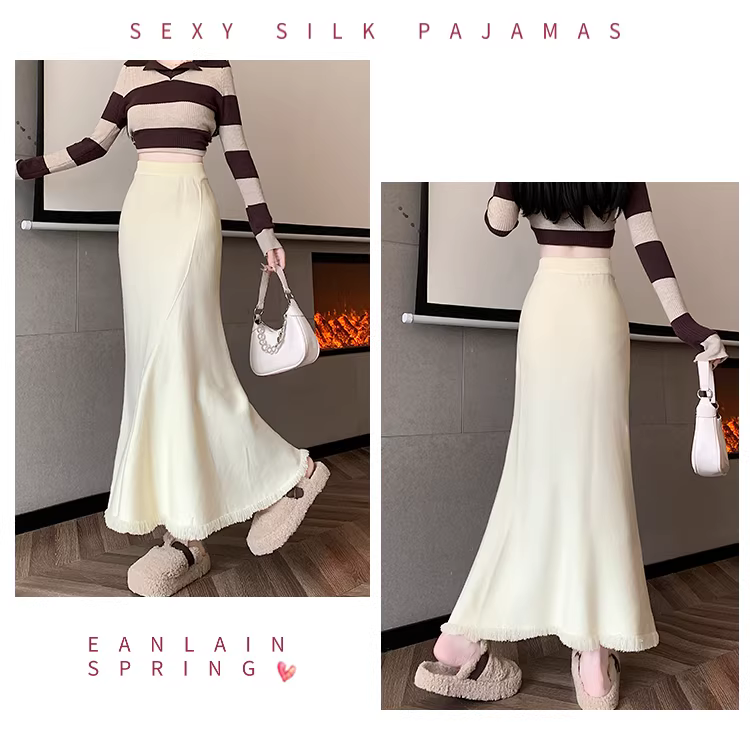 - Váy đuôi cá dáng bất quy tắc La Chapelle màu mơ dành cho nữ, mẫu mới thu đông 2025, đa năng, cạp cao, dáng chữ A, dài.