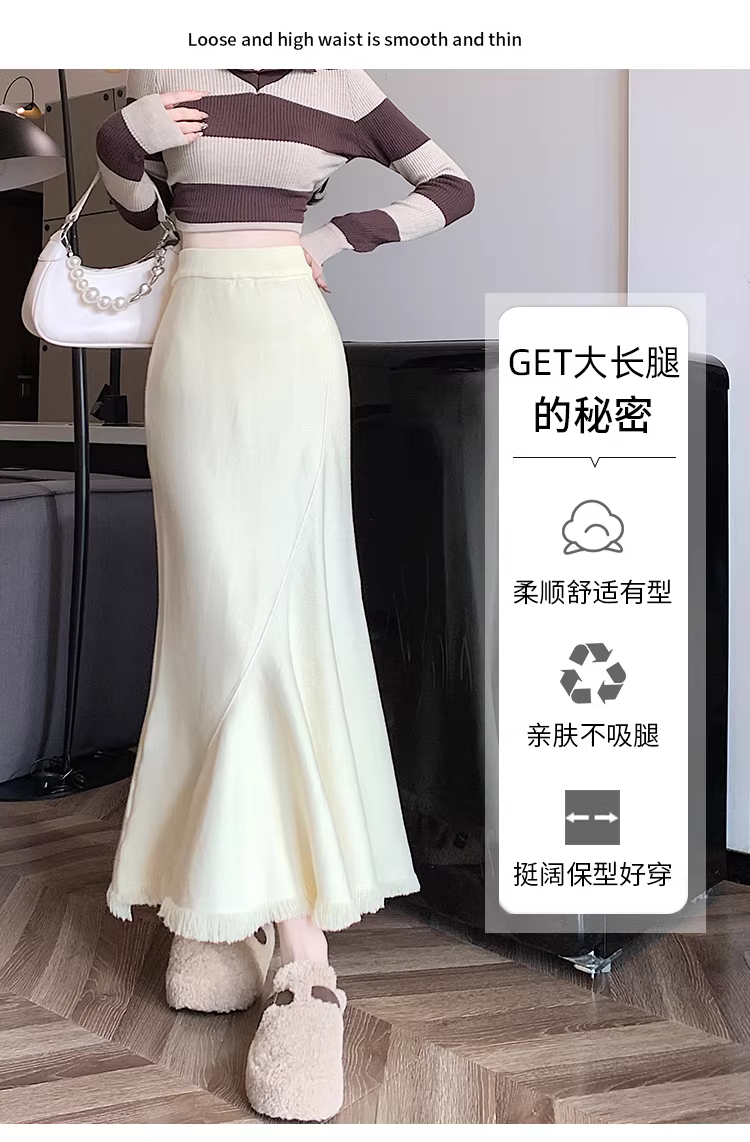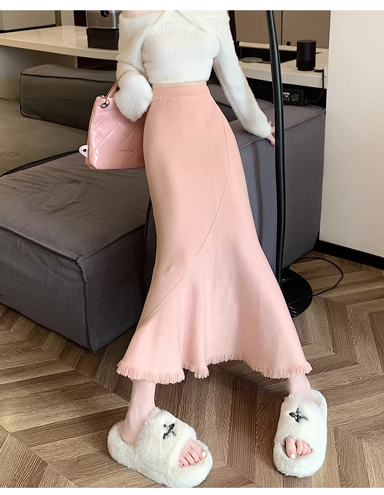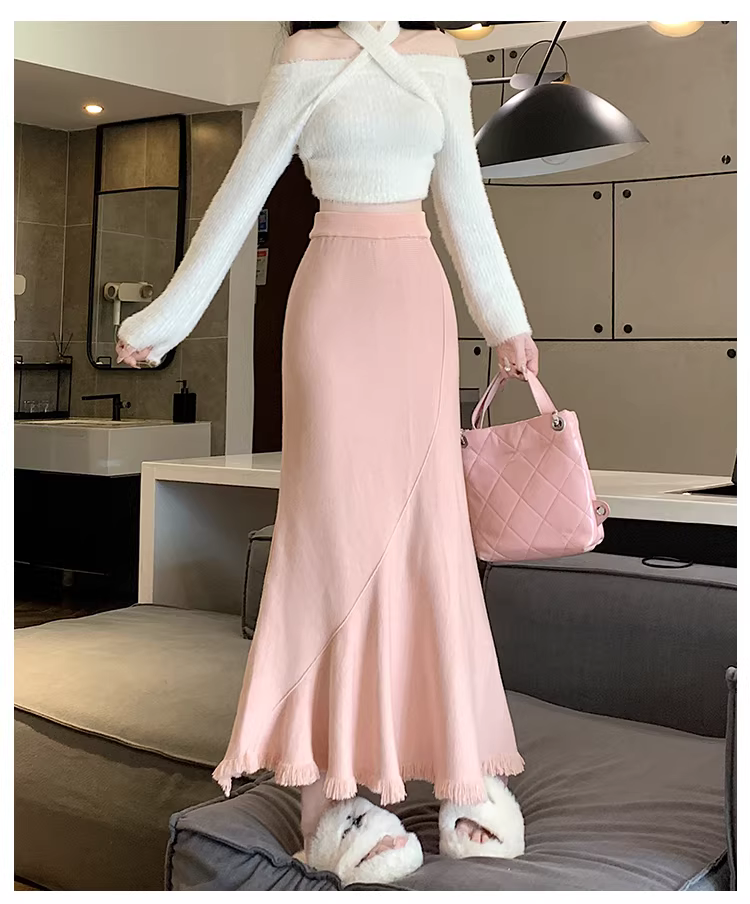Váy đuôi cá dáng bất quy tắc La Chapelle màu mơ dành cho nữ, mẫu mới thu đông 2025, đa năng, cạp cao, dáng chữ A, dài.