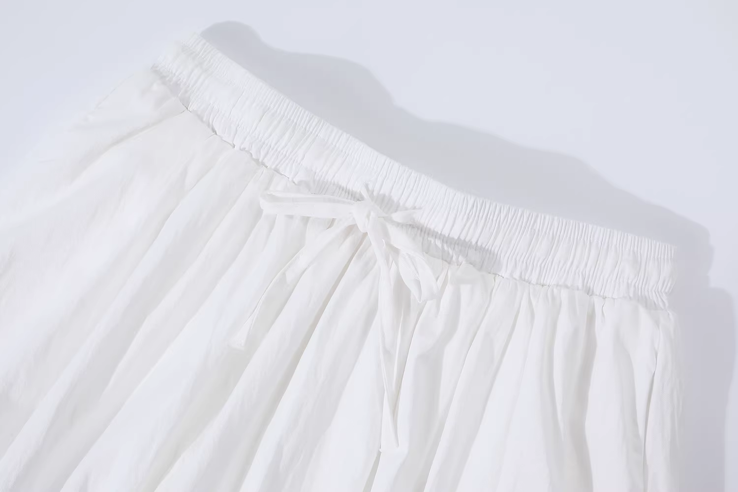 - Váy eo thun cổ điển phong cách Hàn Quốc dành cho nữ, thiết kế mùa thu, váy ô dù lưng cao, thon gọn, đa năng và độc đáo.