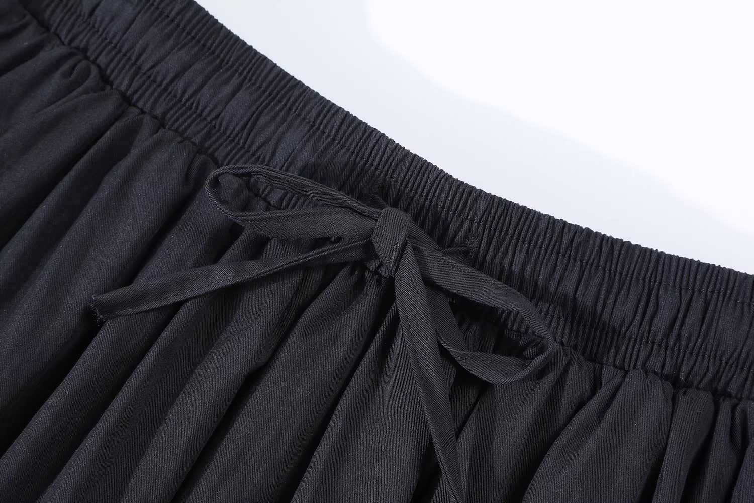 Váy eo thun cổ điển phong cách Hàn Quốc dành cho nữ, thiết kế mùa thu, váy ô dù lưng cao, thon gọn, đa năng và độc đáo.