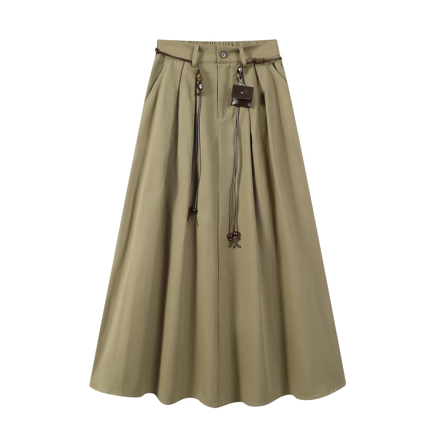 - Váy eo thun phong cách Hàn Quốc có thắt lưng dành cho nữ, váy dài xếp ly đa năng eo cao mùa thu