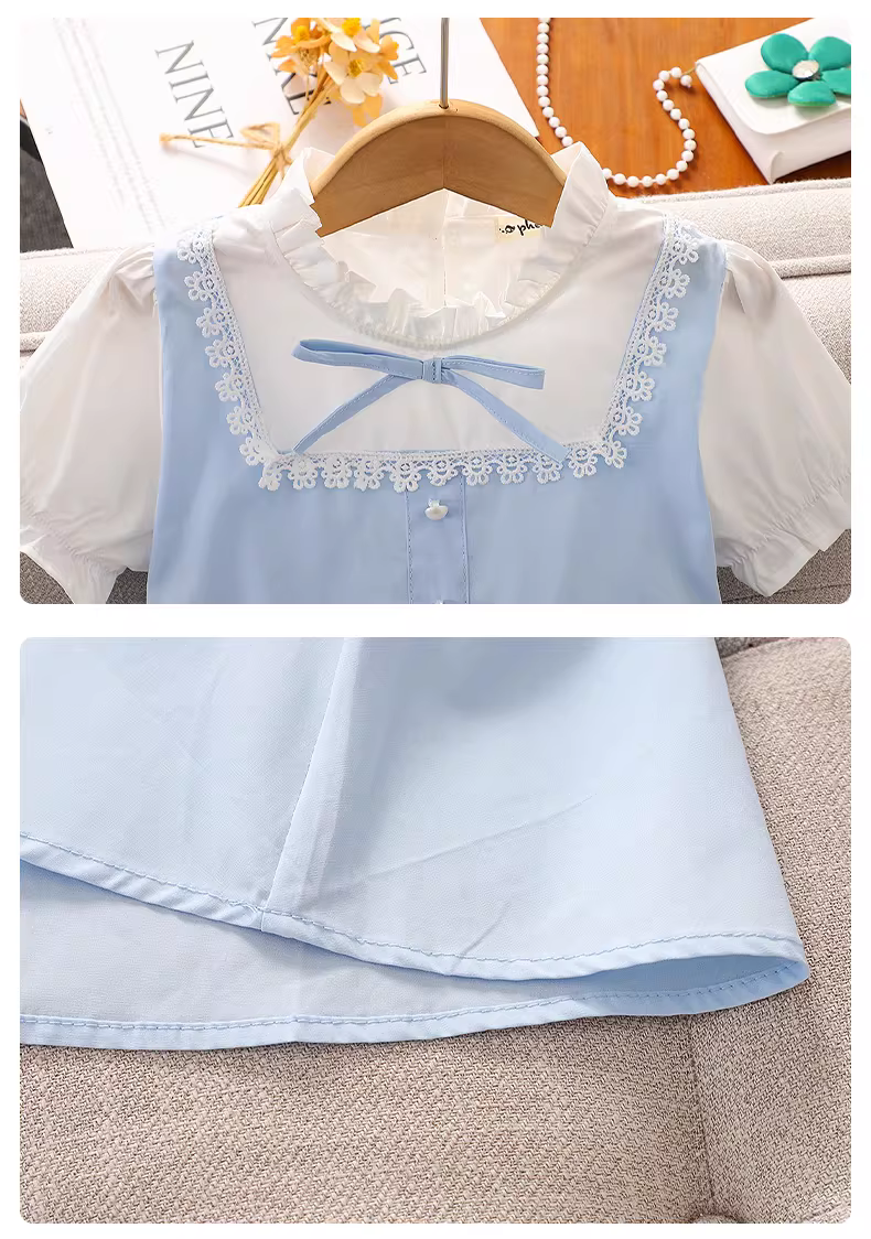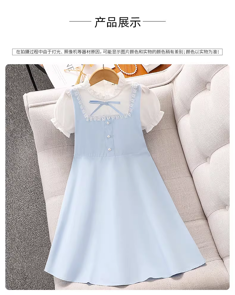 - Váy hai mảnh giả kiểu hè 2025 dành cho bé gái, kiểu dáng mới, phong cách học sinh, váy công chúa mỏng cho trẻ em