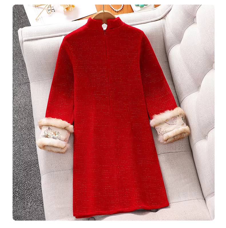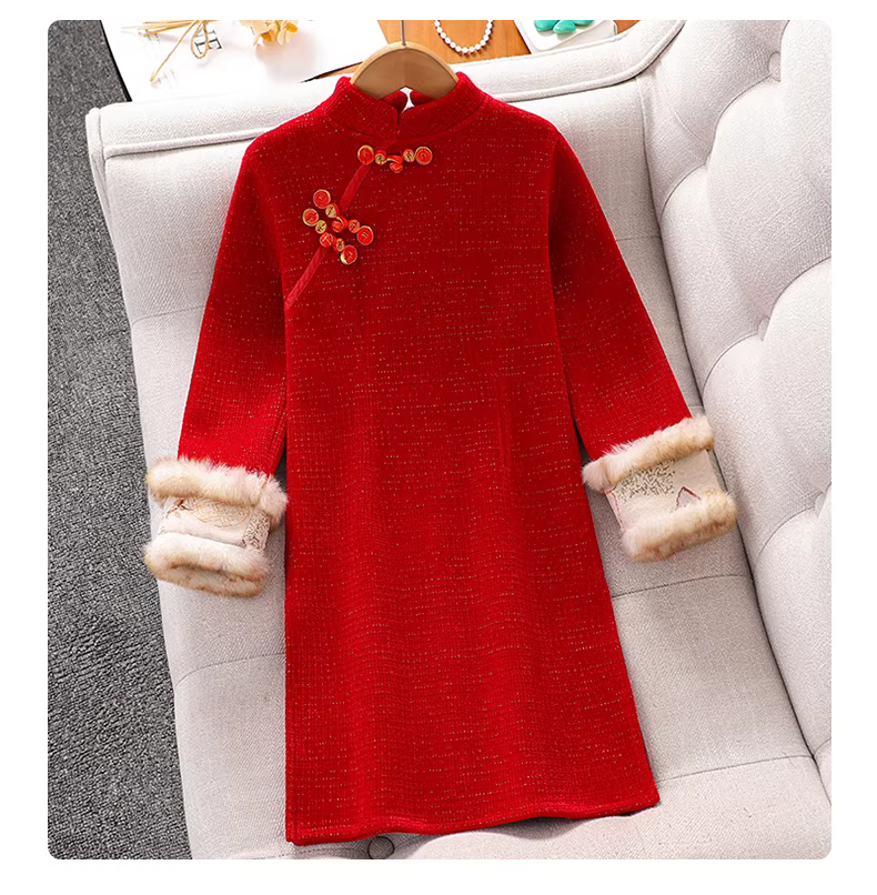 - Váy Hanfu cho bé gái Quần áo mùa đông Quần áo năm mới 2025 Quần áo năm mới cho bé gái Sườn xám năm mới Trang phục chào mừng năm mới Váy thu đông cho trẻ em