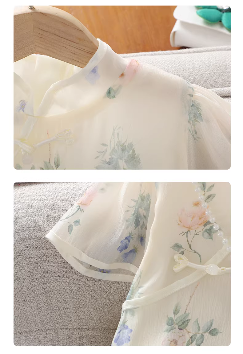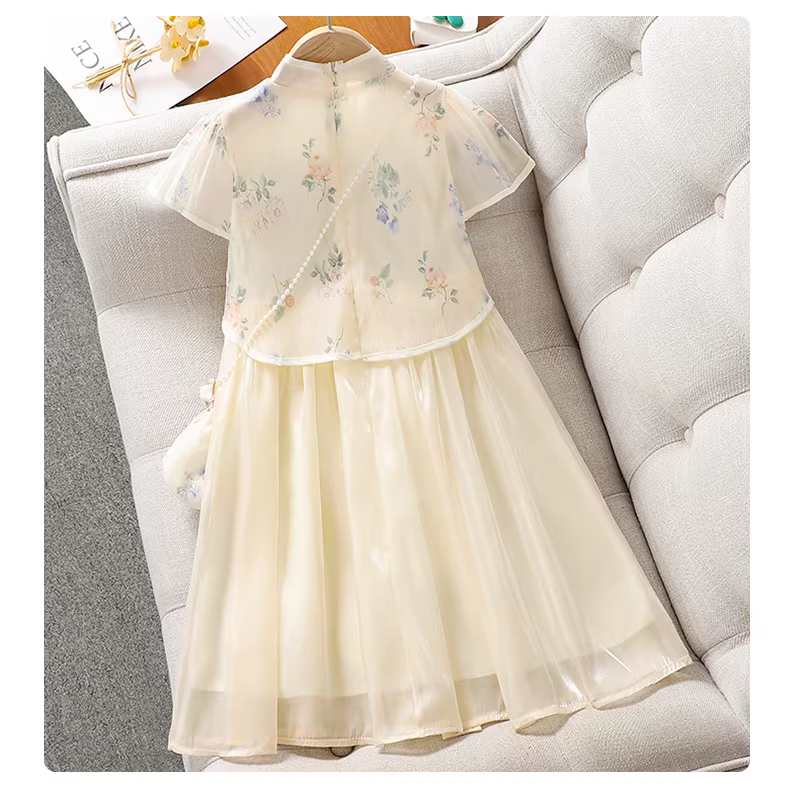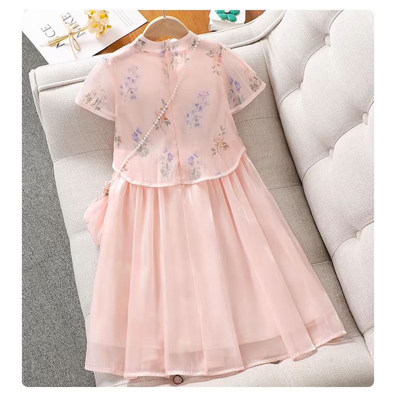 Váy Hanfu mùa hè cho bé gái 2025 kiểu mới, trang phục dân tộc trẻ em, kiểu giả hai mảnh, váy mùa hè phong cách cổ điển, váy công chúa cho bé gái