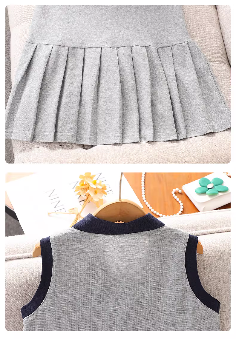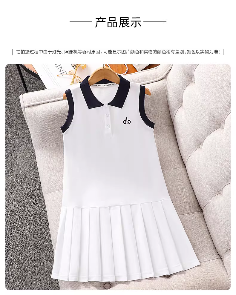 - Váy hè bé gái 2025 kiểu mới, phong cách preppy, cổ polo, váy liền thân mỏng, kiểu dáng thường ngày