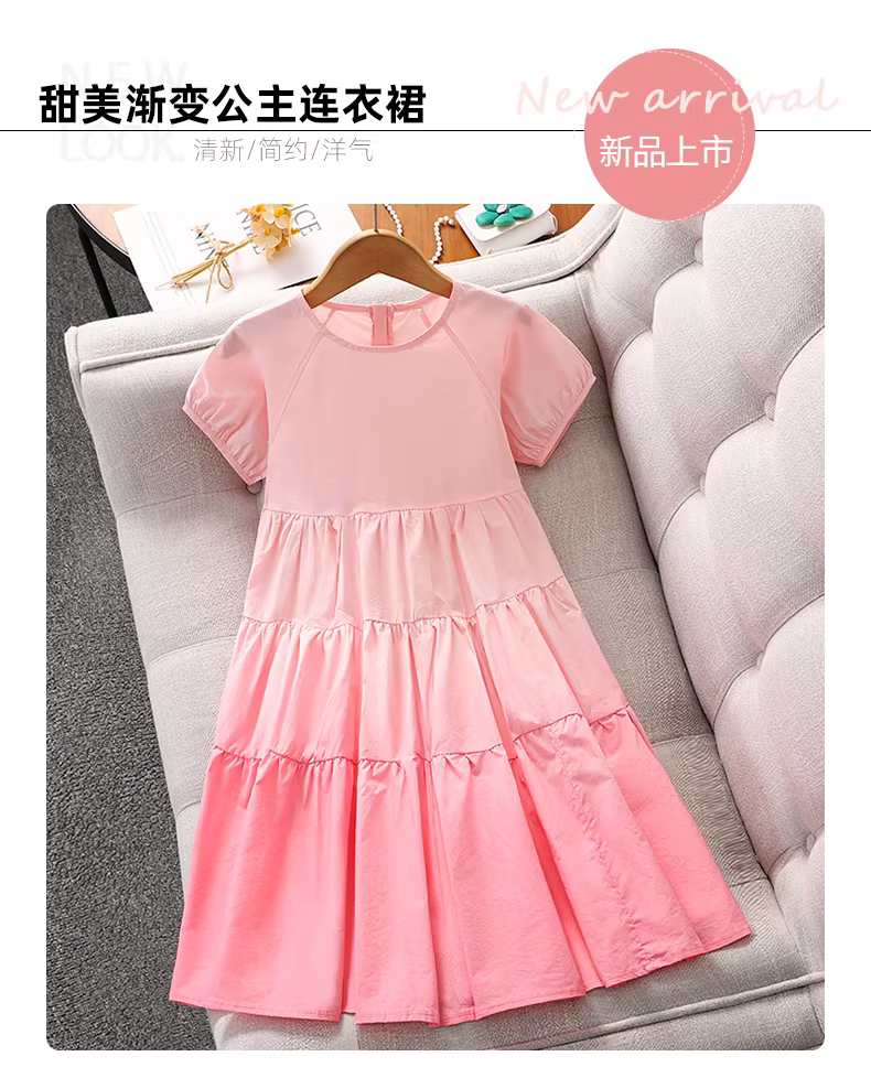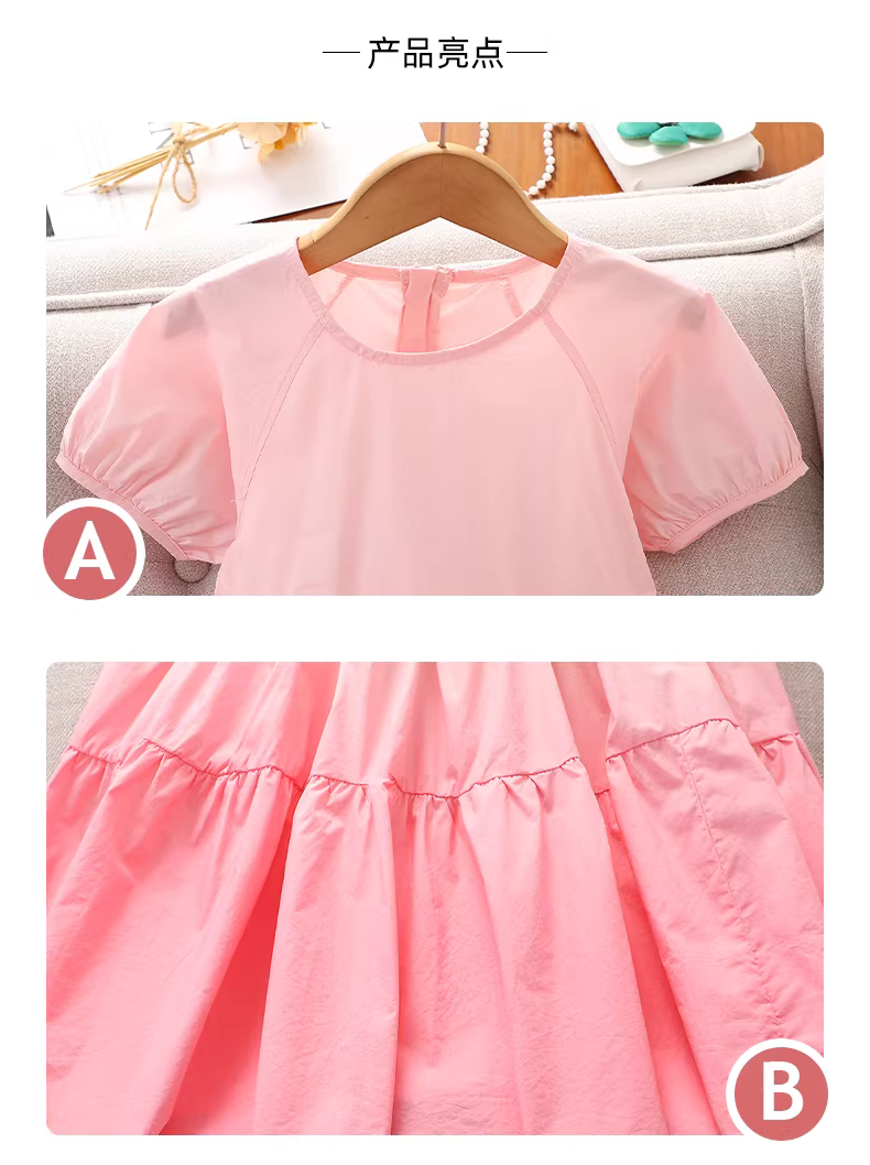 - Váy hè bé gái 2025 kiểu mới, váy công chúa ngắn tay phối màu, váy cotton thời trang hè cho bé