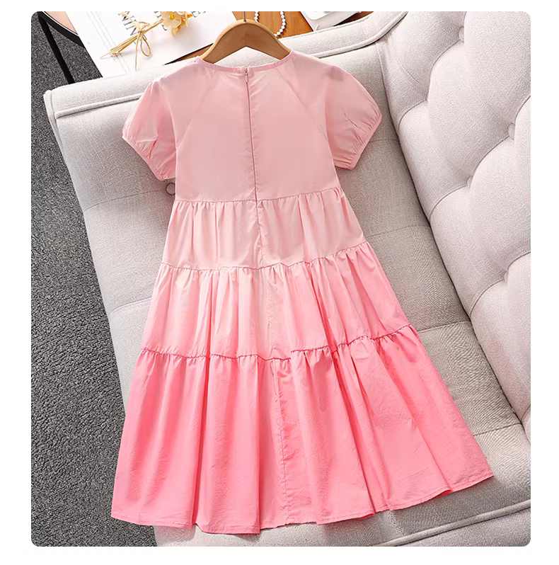 Váy hè bé gái 2025 kiểu mới, váy công chúa ngắn tay phối màu, váy cotton thời trang hè cho bé
