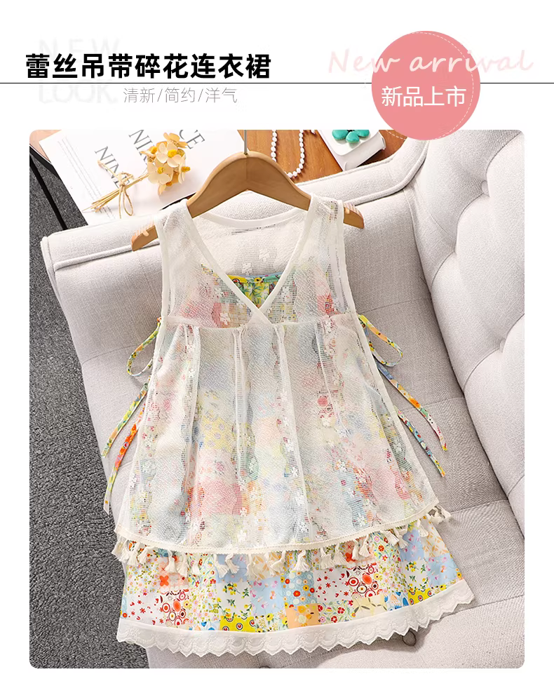 - Váy hè bé gái 2025 kiểu mới, váy dây ren bé gái, váy hoa đi biển mùa hè cho trẻ em