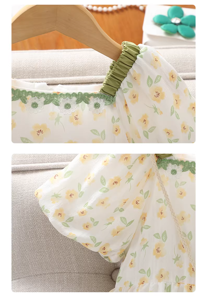 - Váy hè kiểu công chúa cho bé gái lớn, tay bồng hoa nhí, kiểu mới 2025, váy hè cổ vuông cho bé gái