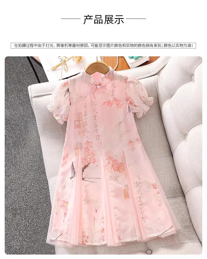 - Váy hè kiểu dân tộc cho bé gái 2025, váy Hanfu mới, váy hè kiểu cổ điển, váy công chúa kiểu cheongsam