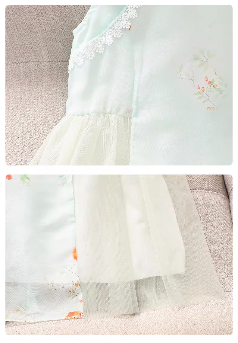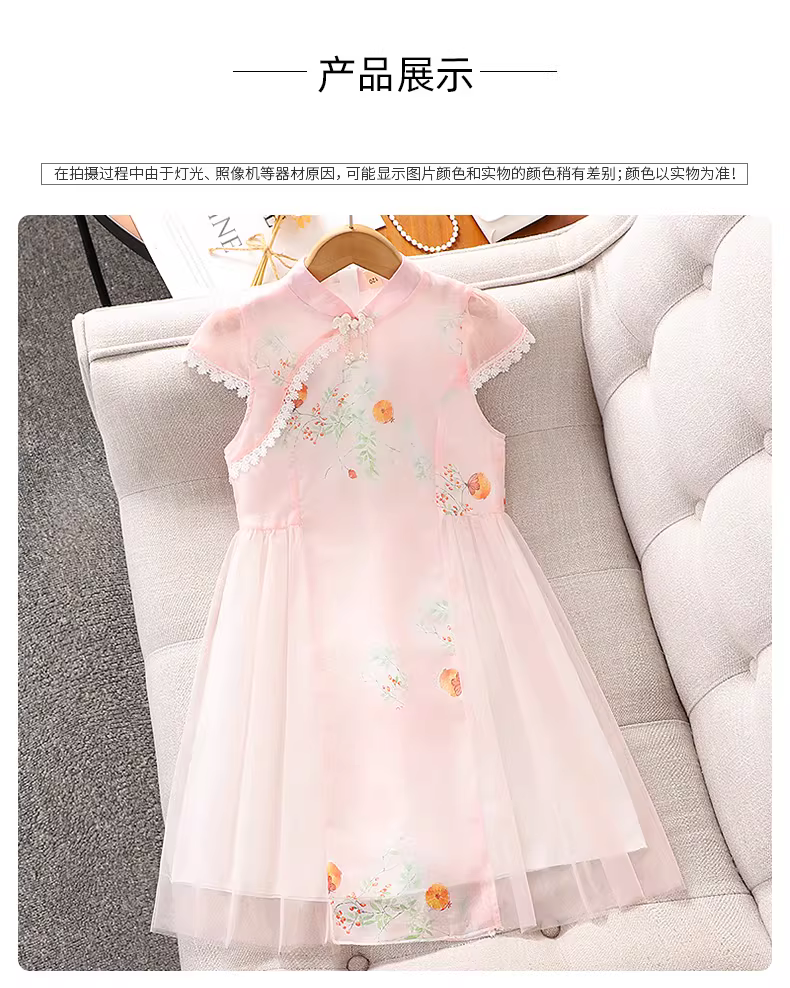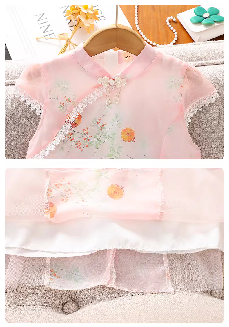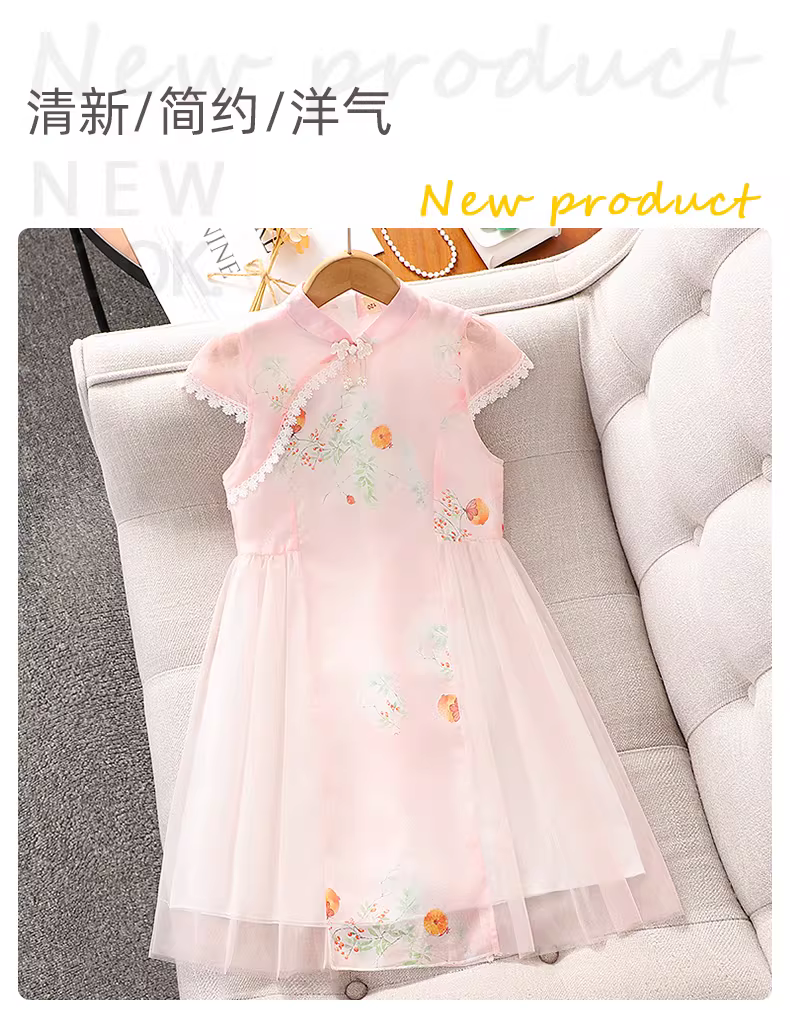 - Váy hè kiểu mới 2025 cho bé gái, phong cách Trung Hoa, kiểu áo dài, hanfu, váy lưới công chúa mùa hè