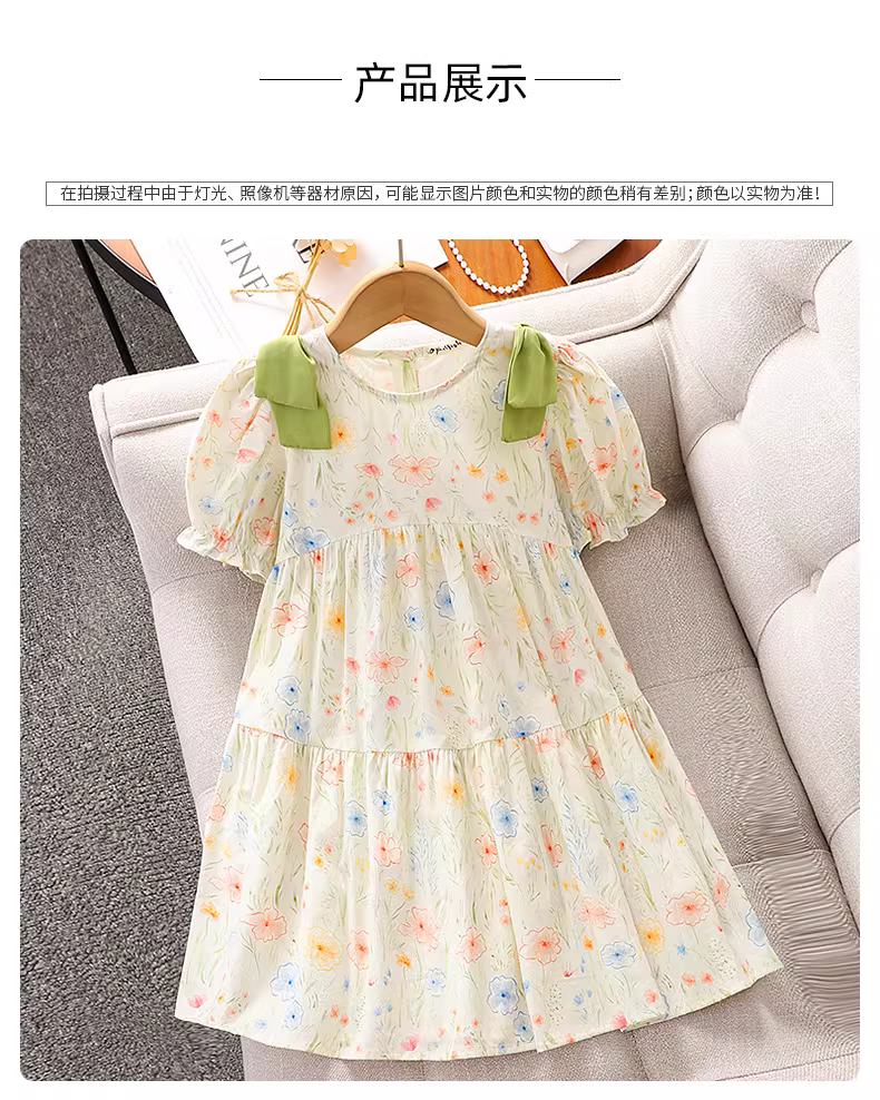 Váy hoa bé gái hè 2025 kiểu mới, váy bồng tay bồng nơ, váy hè công chúa cho bé