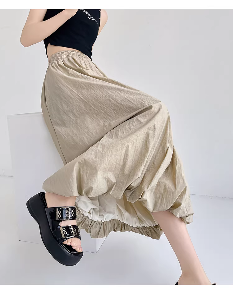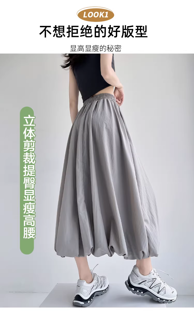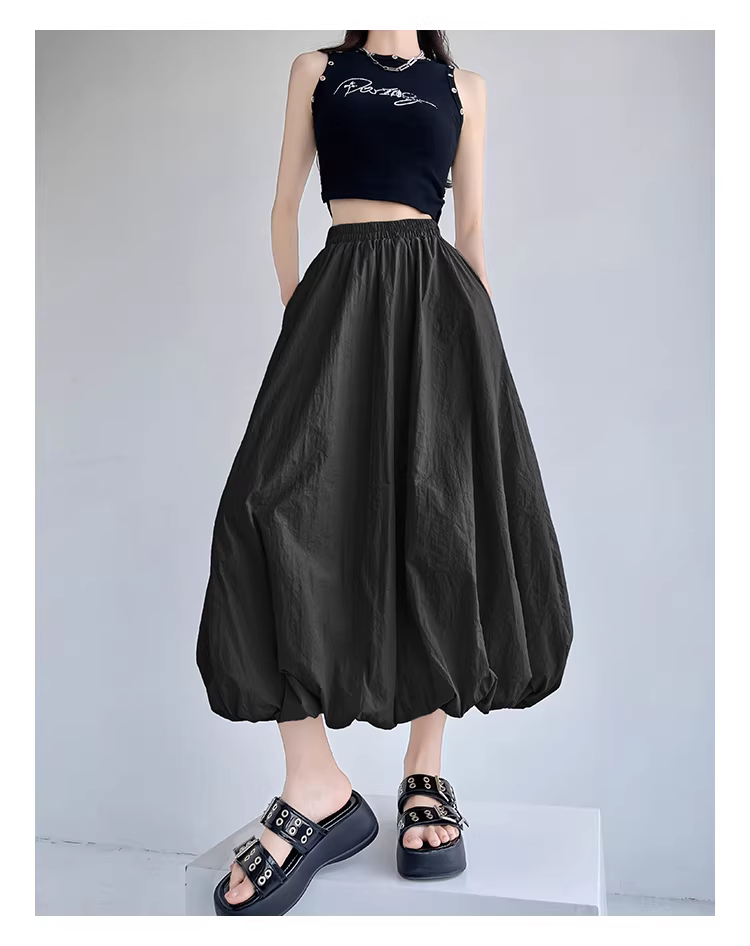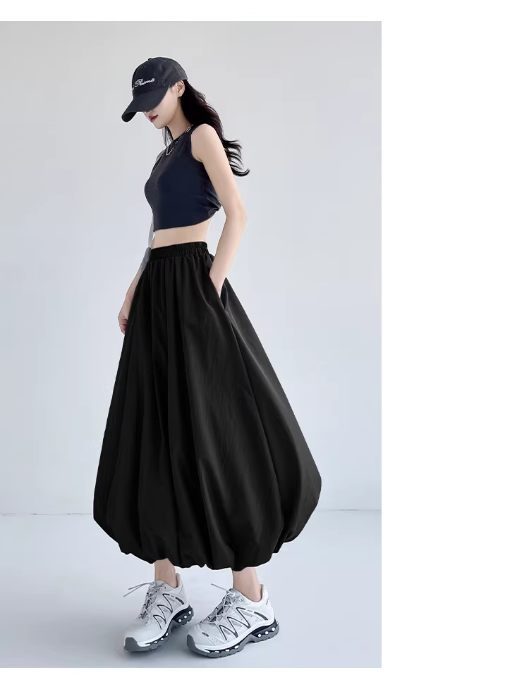Váy hoa đen, váy đèn lồng dài vừa phải dành cho nữ, mùa xuân hè, váy chữ A dáng rộng phổ biến năm nay.