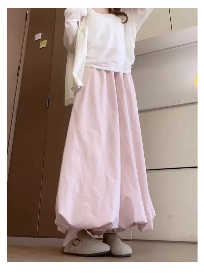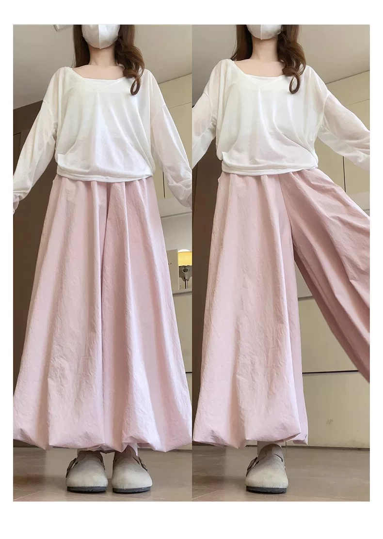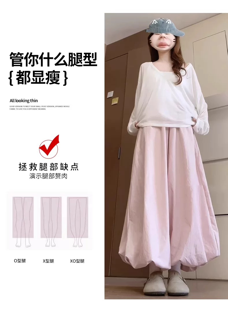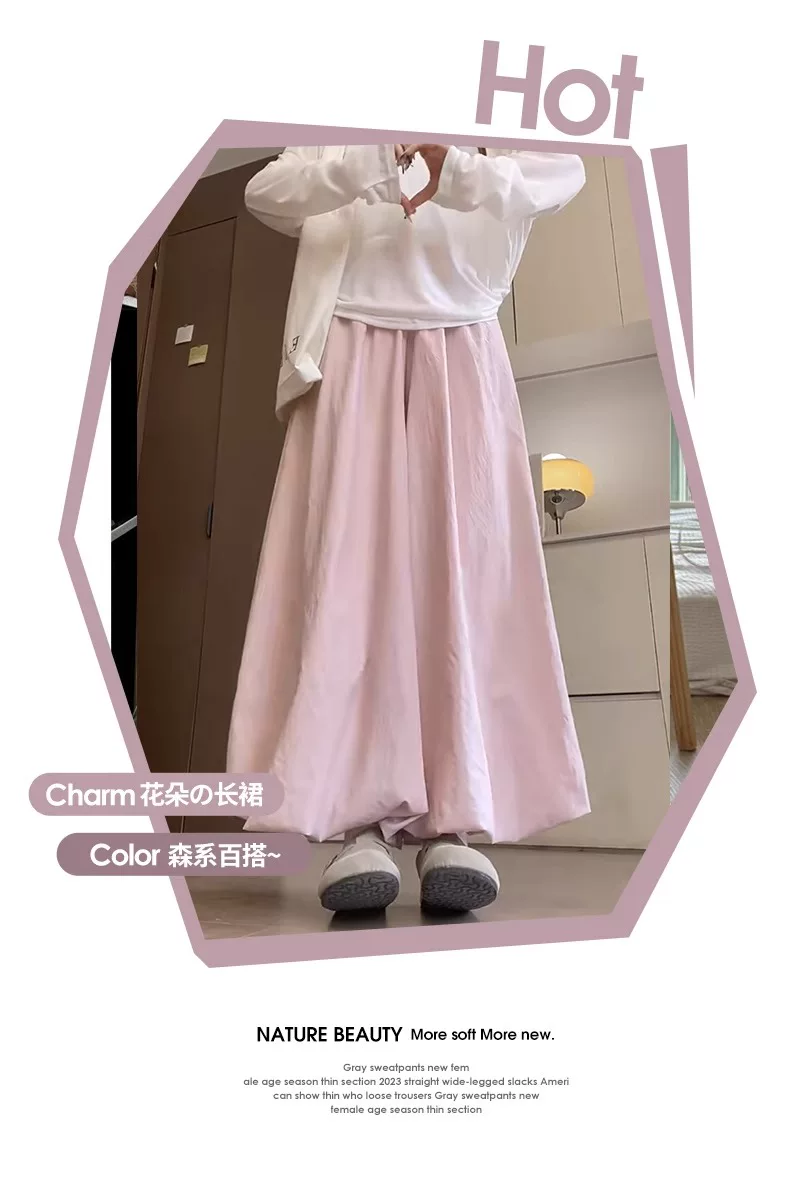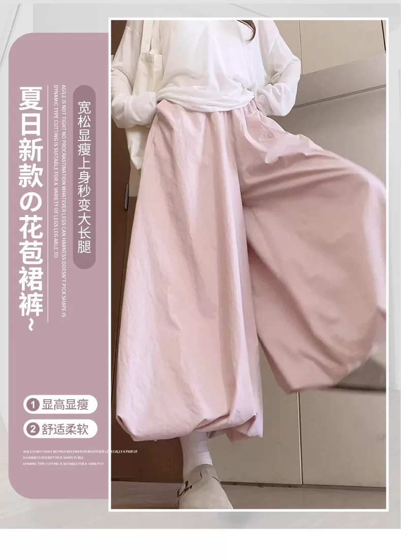 Váy hoa màu hồng dành cho nữ, cỡ lớn mùa hè, nhỏ nhắn, cỡ lớn, lưng cao, dáng rộng, quần đèn lồng thon gọn, quần ống rộng thông thường.