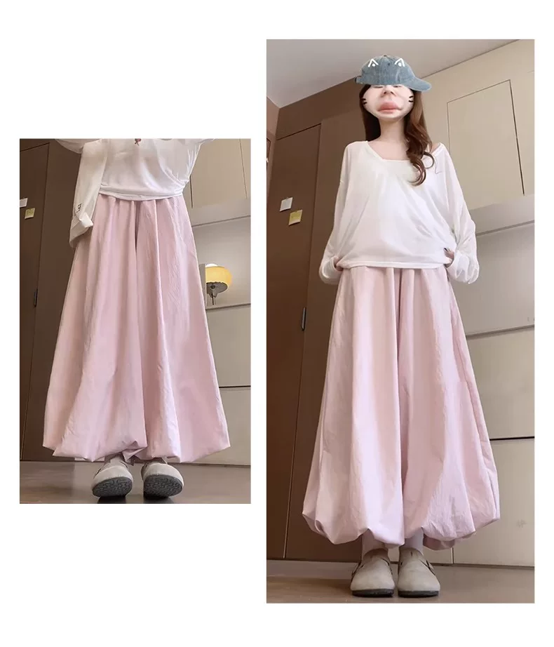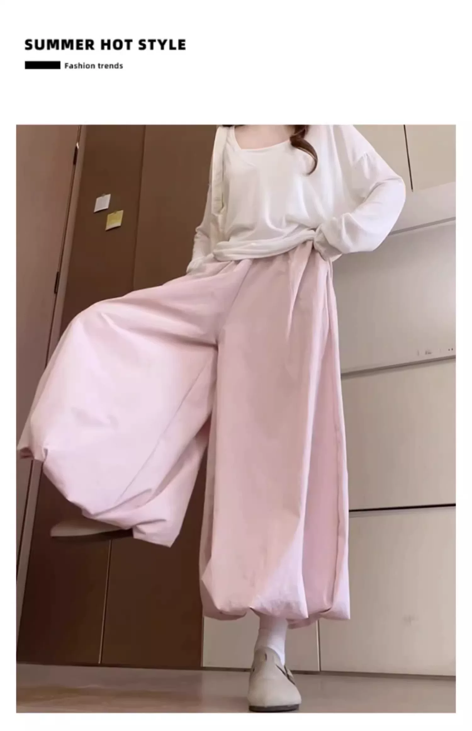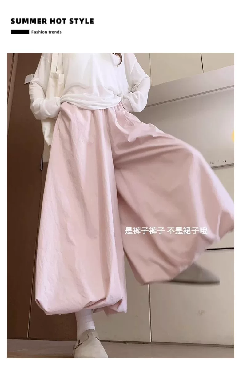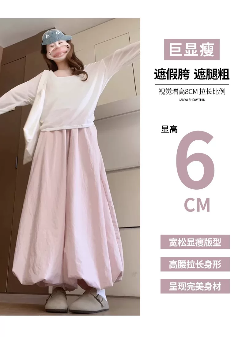 - Váy hoa màu hồng dành cho nữ, cỡ lớn mùa hè, nhỏ nhắn, cỡ lớn, lưng cao, dáng rộng, quần đèn lồng thon gọn, quần ống rộng thông thường.