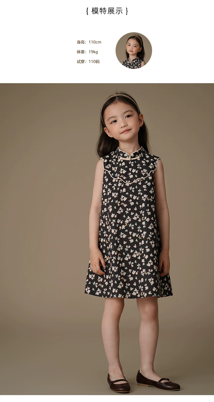 - Váy hoa mùa hè cho bé gái, váy hai dây kiểu Trung Quốc mới, quần áo mùa hè đơn giản và cao cấp cho bé gái.