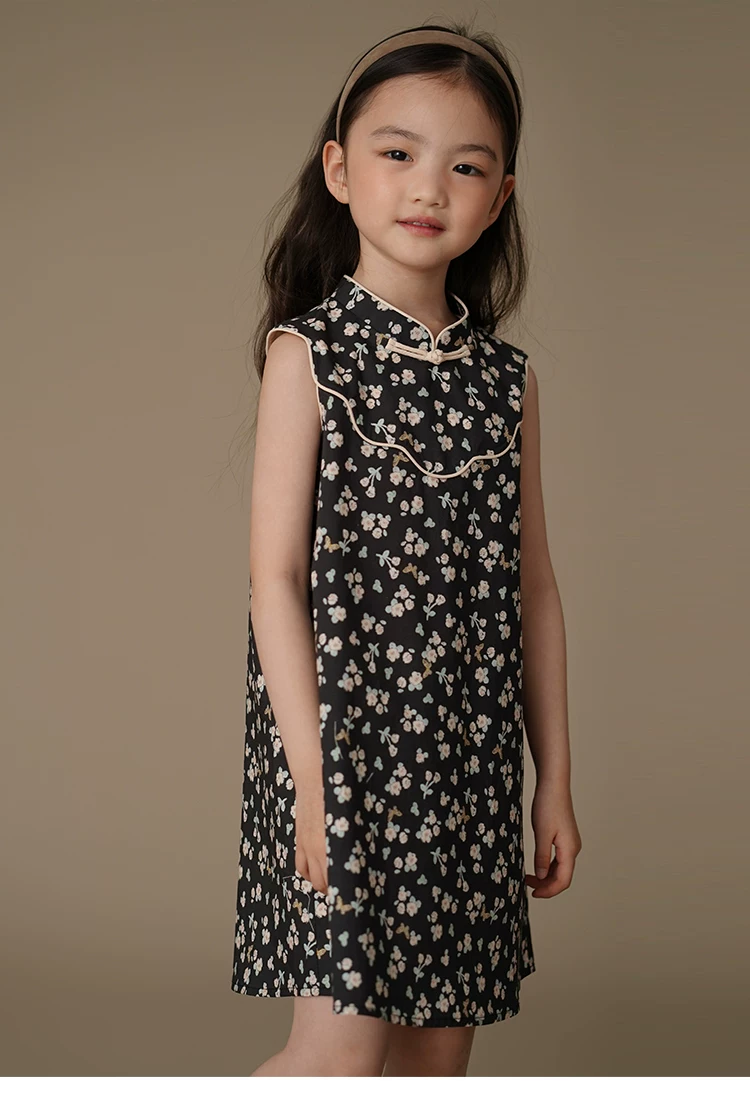 Váy hoa mùa hè cho bé gái, váy hai dây kiểu Trung Quốc mới, quần áo mùa hè đơn giản và cao cấp cho bé gái.