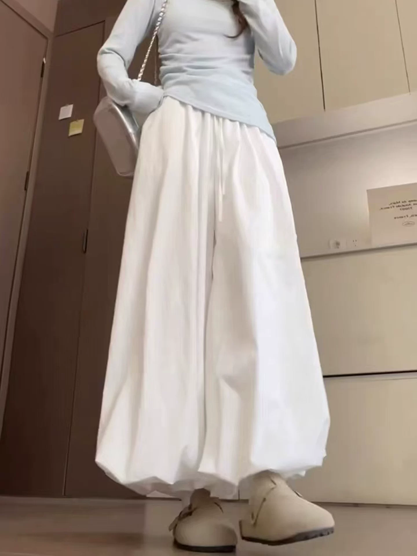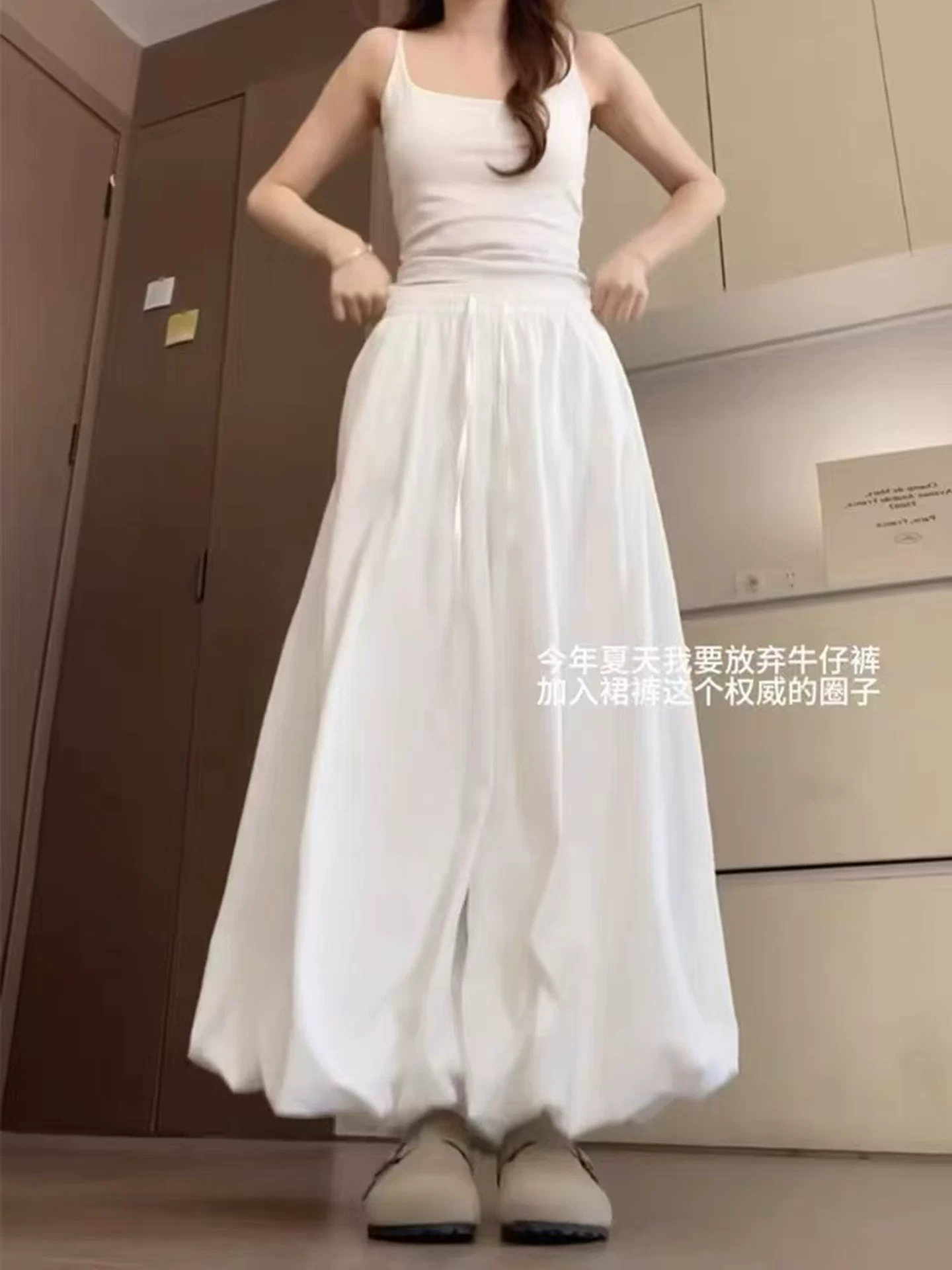 - Váy hoa trắng dáng rộng cho nữ, kiểu dáng mỏng mùa hè 2025, size lớn, quần ống rộng, cạp cao, dáng rộng, quần ống rộng tôn dáng.