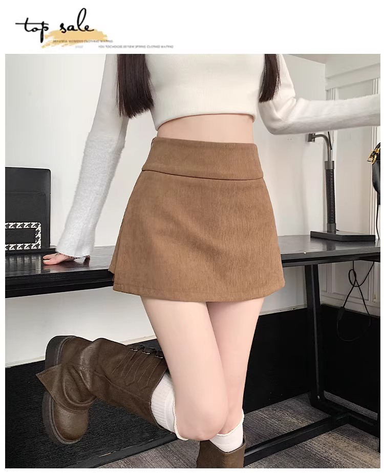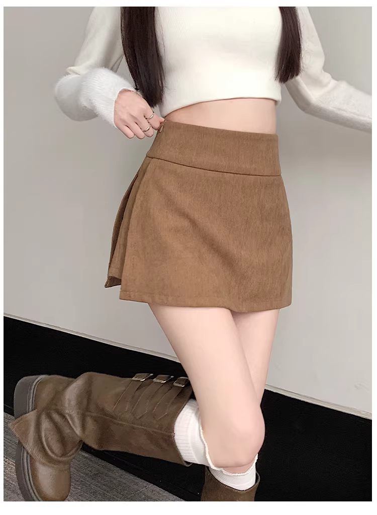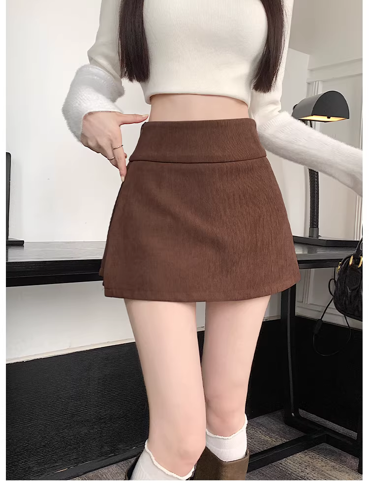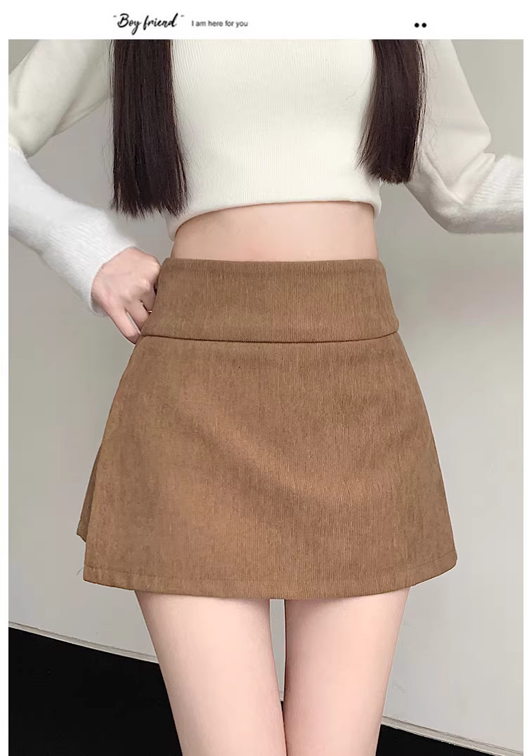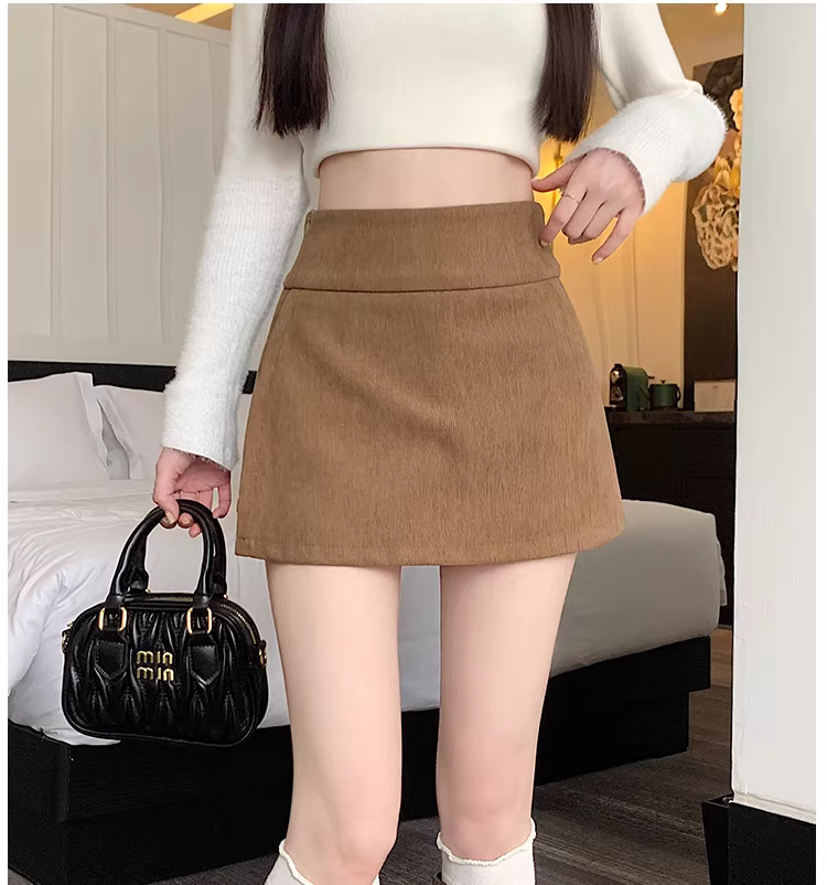 Váy kaki nhung tăm La Chapelle dành cho nữ, thu đông 2025, kiểu dáng mới, cạp cao, tôn dáng, dáng chữ A, kiểu bút chì