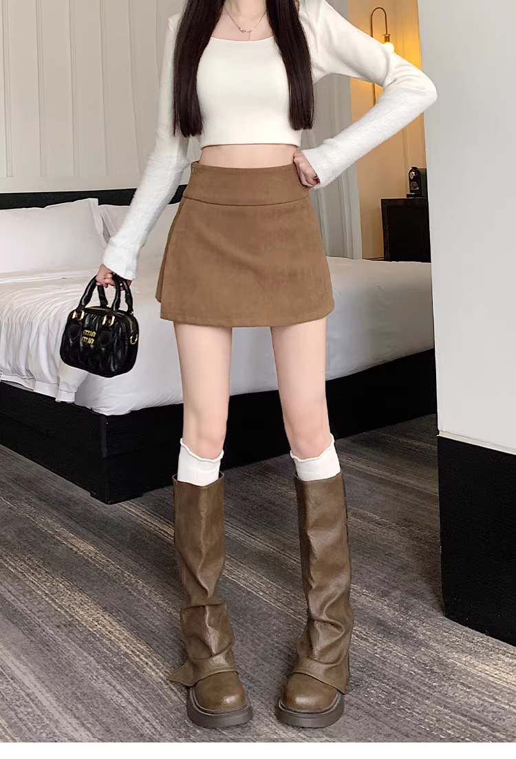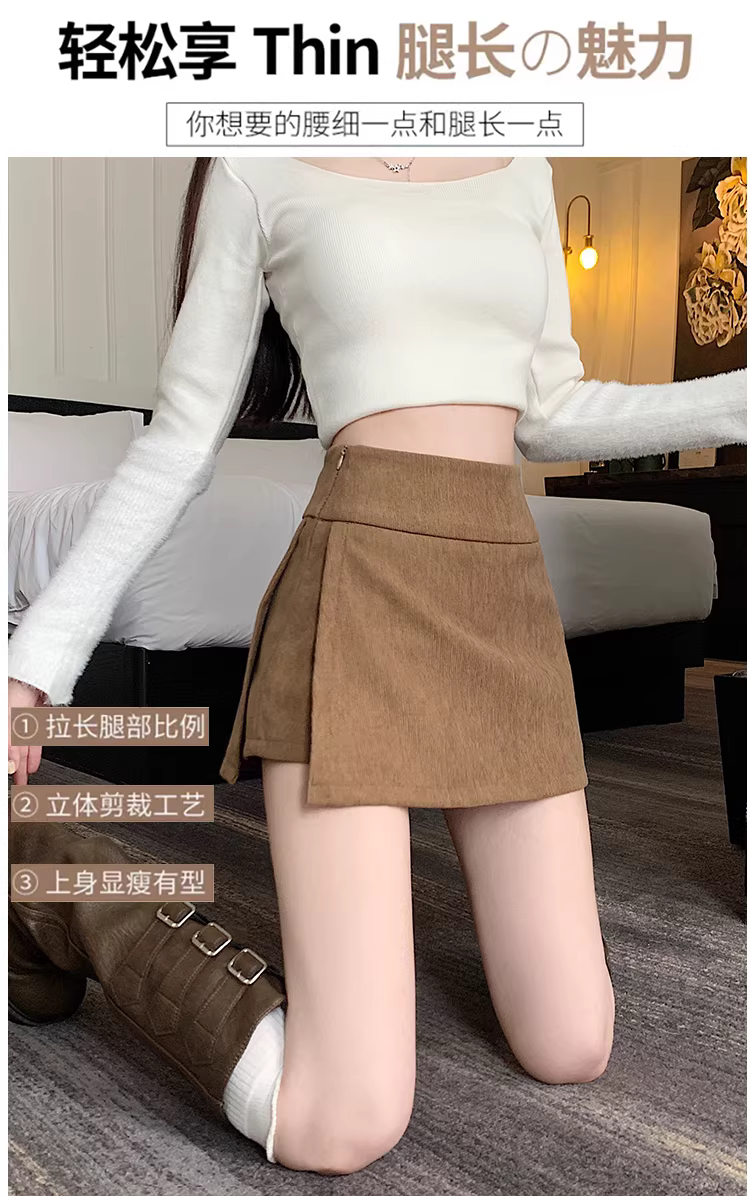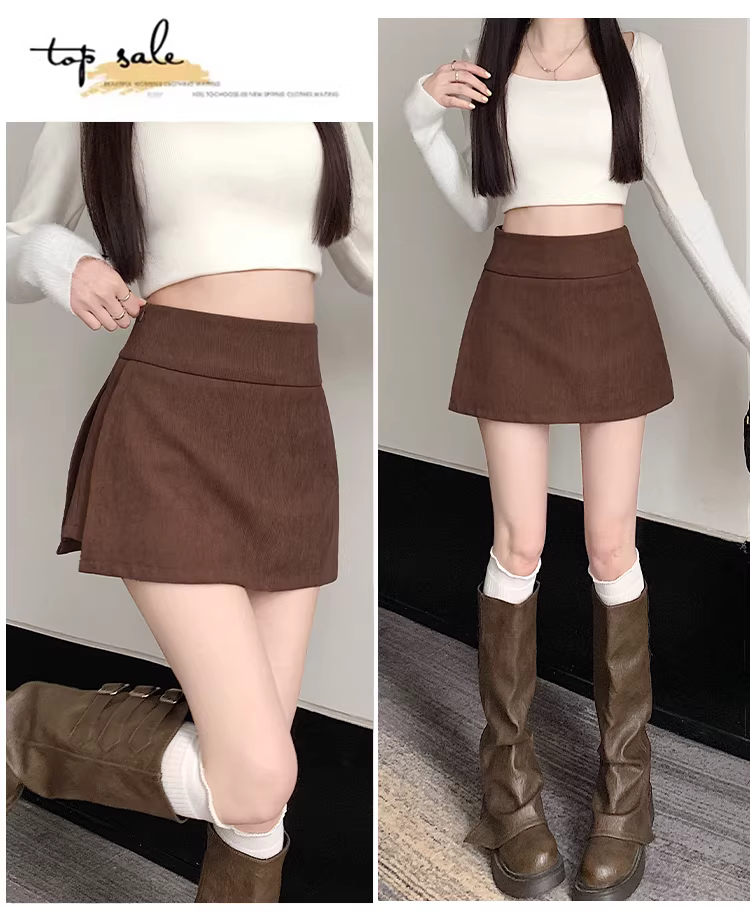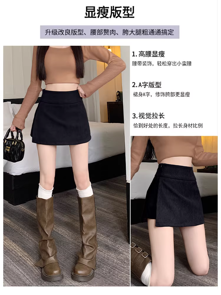 Váy kaki nhung tăm La Chapelle dành cho nữ, thu đông 2025, kiểu dáng mới, cạp cao, tôn dáng, dáng chữ A, kiểu bút chì