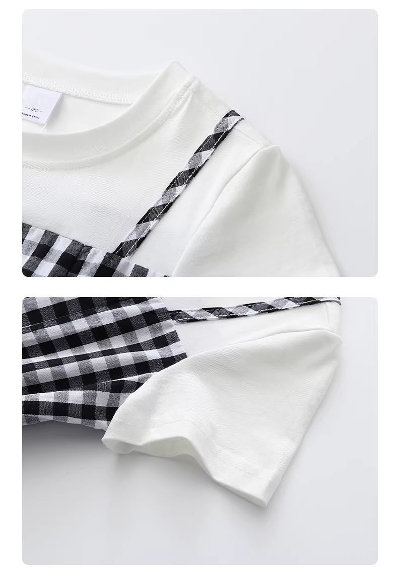 - Váy kẻ caro mùa hè 2025 kiểu mới cho bé gái lớn, váy yếm thắt eo, váy giả hai mảnh có dây đeo cho trẻ em
